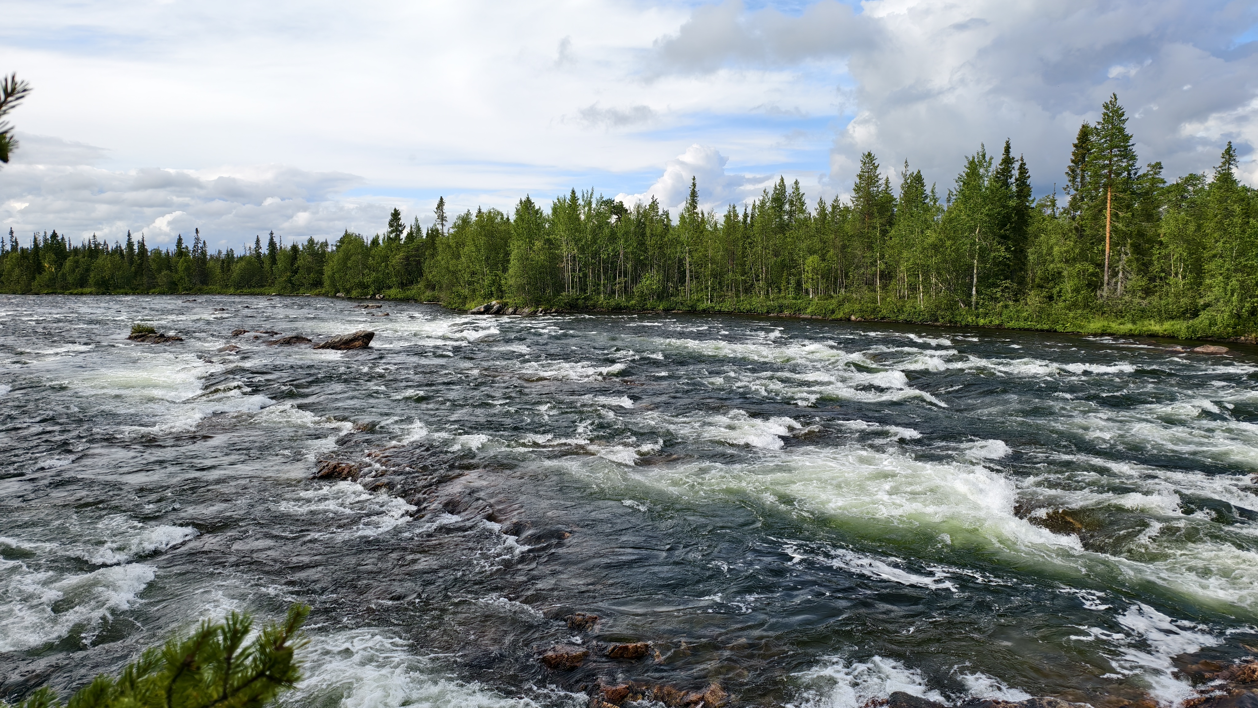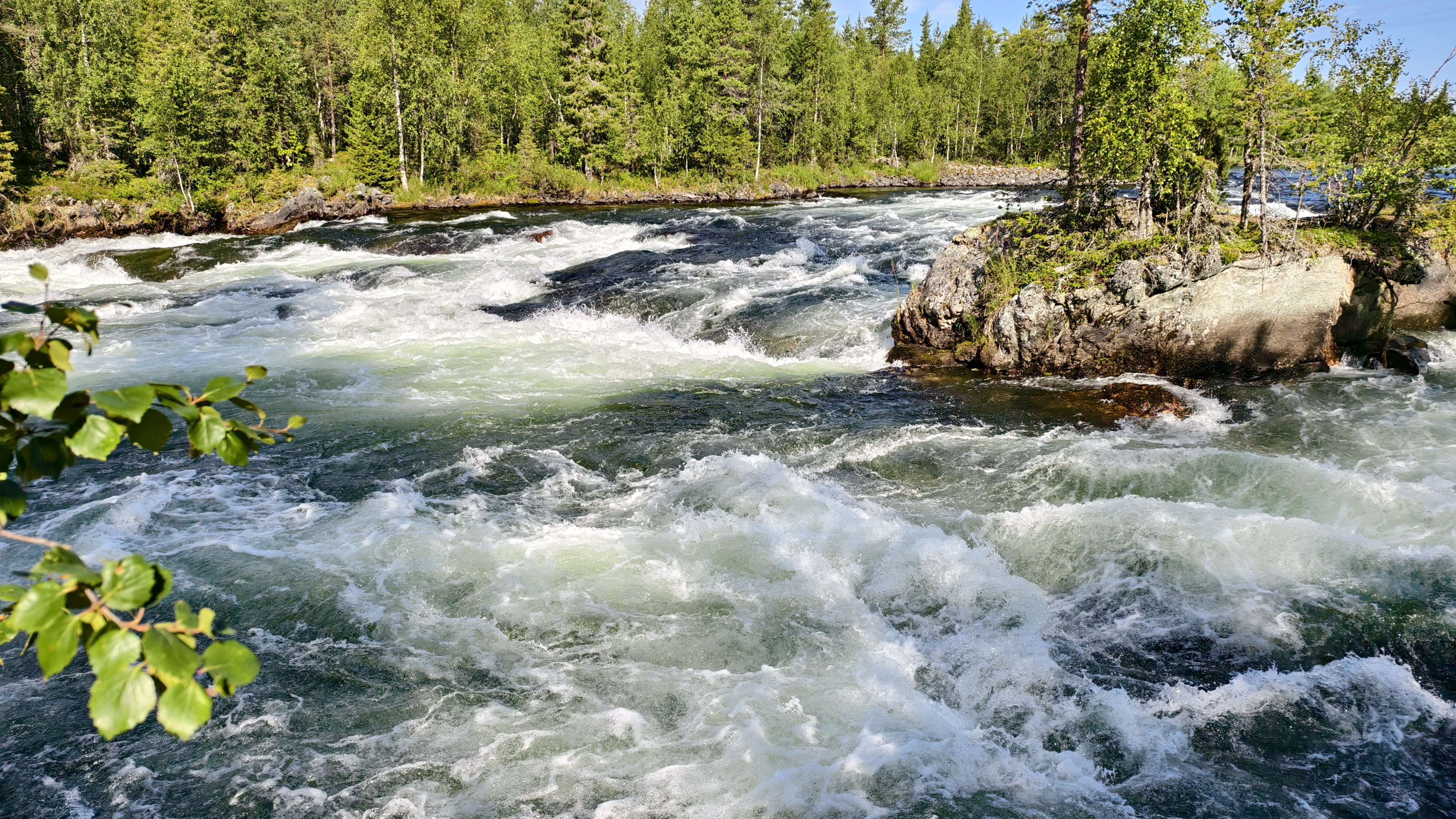 Через протоку, которая называется р. Родвинга, выходим в Пончозеро, а сразу после него начинается трёхкилометровый порог Большой Кривец (2-3 к.с.). Он представляет из себя череду валов, бочек и прижимов. После Кривца будем искать стоянку на ночь.