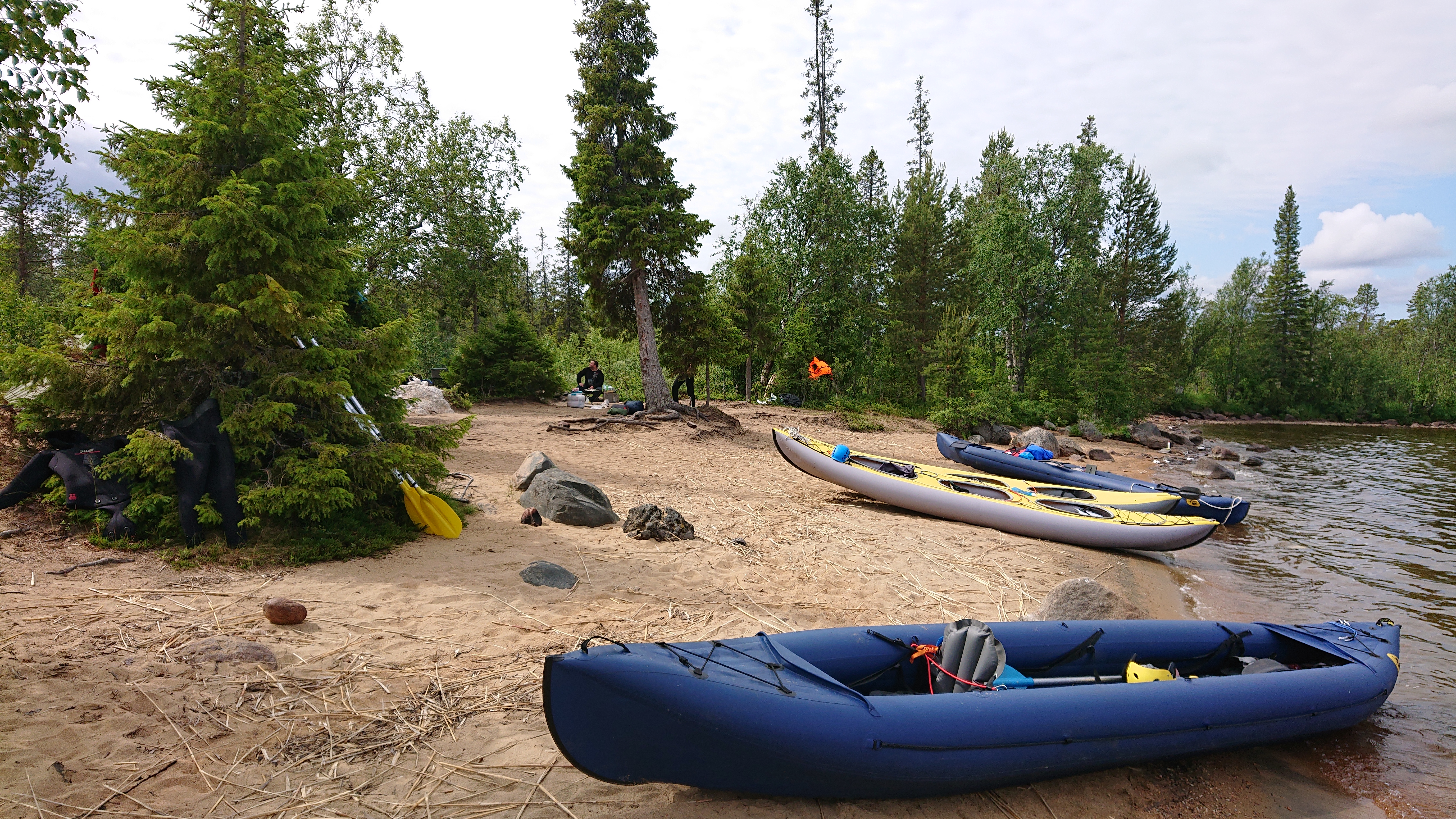 Будет дневка на красивейшем песчаном пляже на выходе из озера, с рыбалкой и баней конечно же. Здесь водится форель, хариус, щука, окунь.