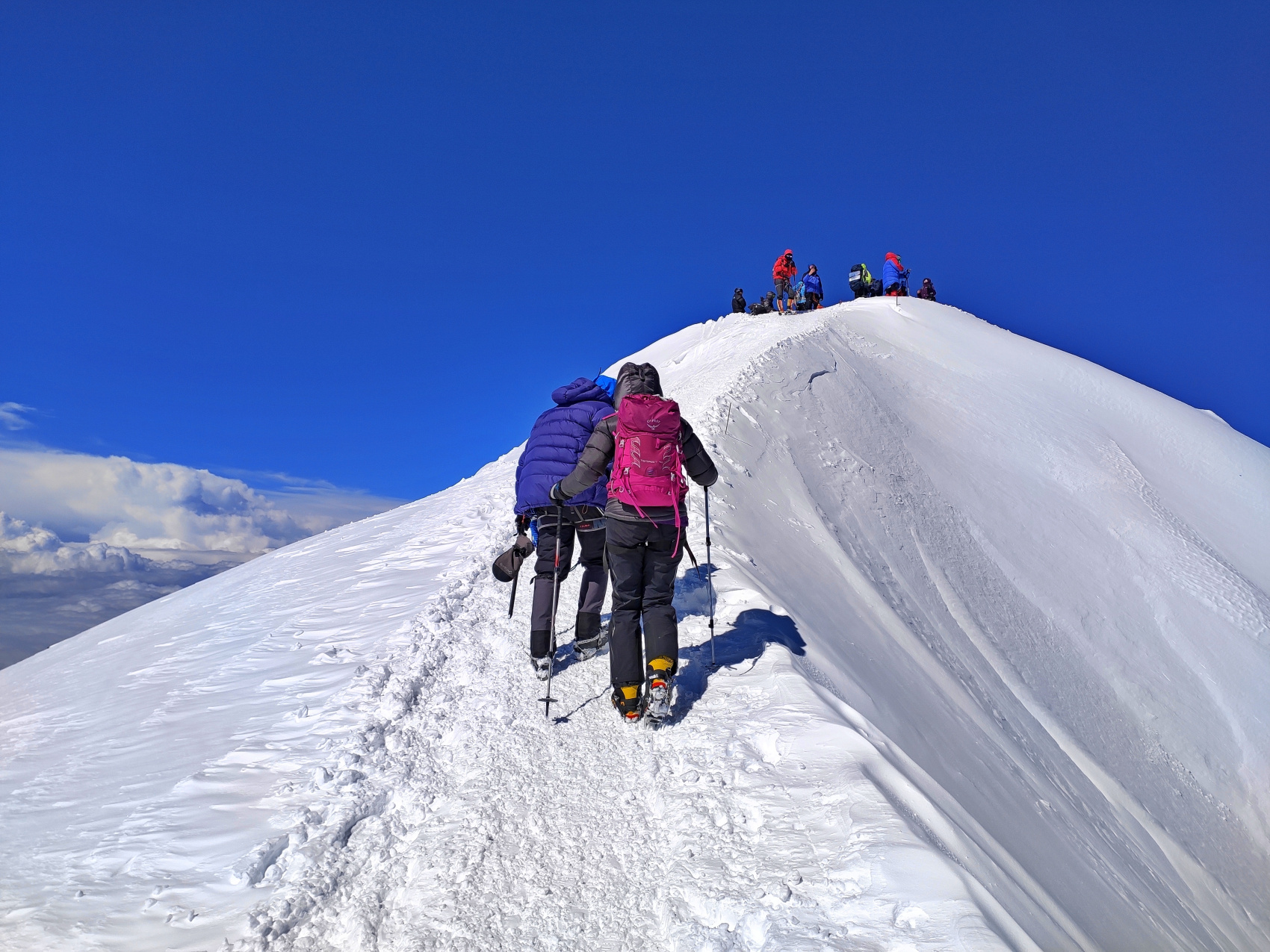 День отдыха перед штурмом вершины. В первой половине дня прогулка совмещенная с тренировкой. Отработаем как пользоваться ледорубом, верёвкой, как ходить в связках, что делать в случае плохой погоды. Собираем рюкзаки и снаряжение для восхождения. Спать ложимся рано, нужно хорошо отдохнуть перед восхождением.