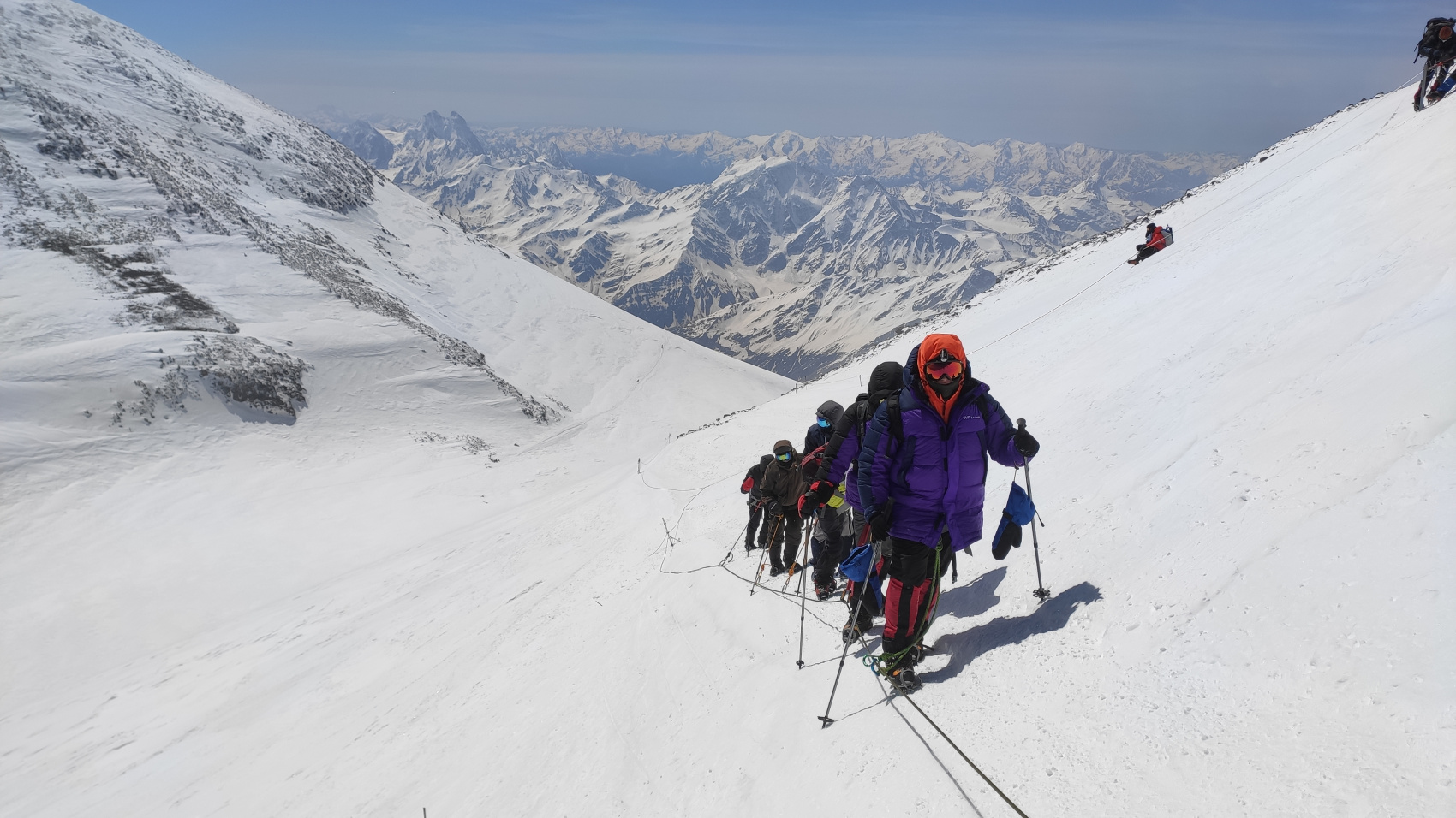 - Альпинистское снаряжение, вся необходимая верхняя одежда и обувь
