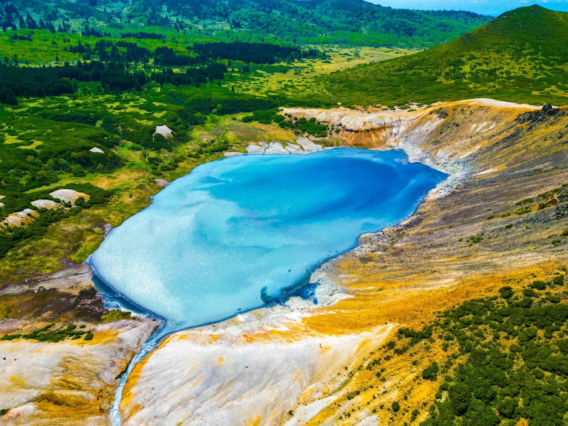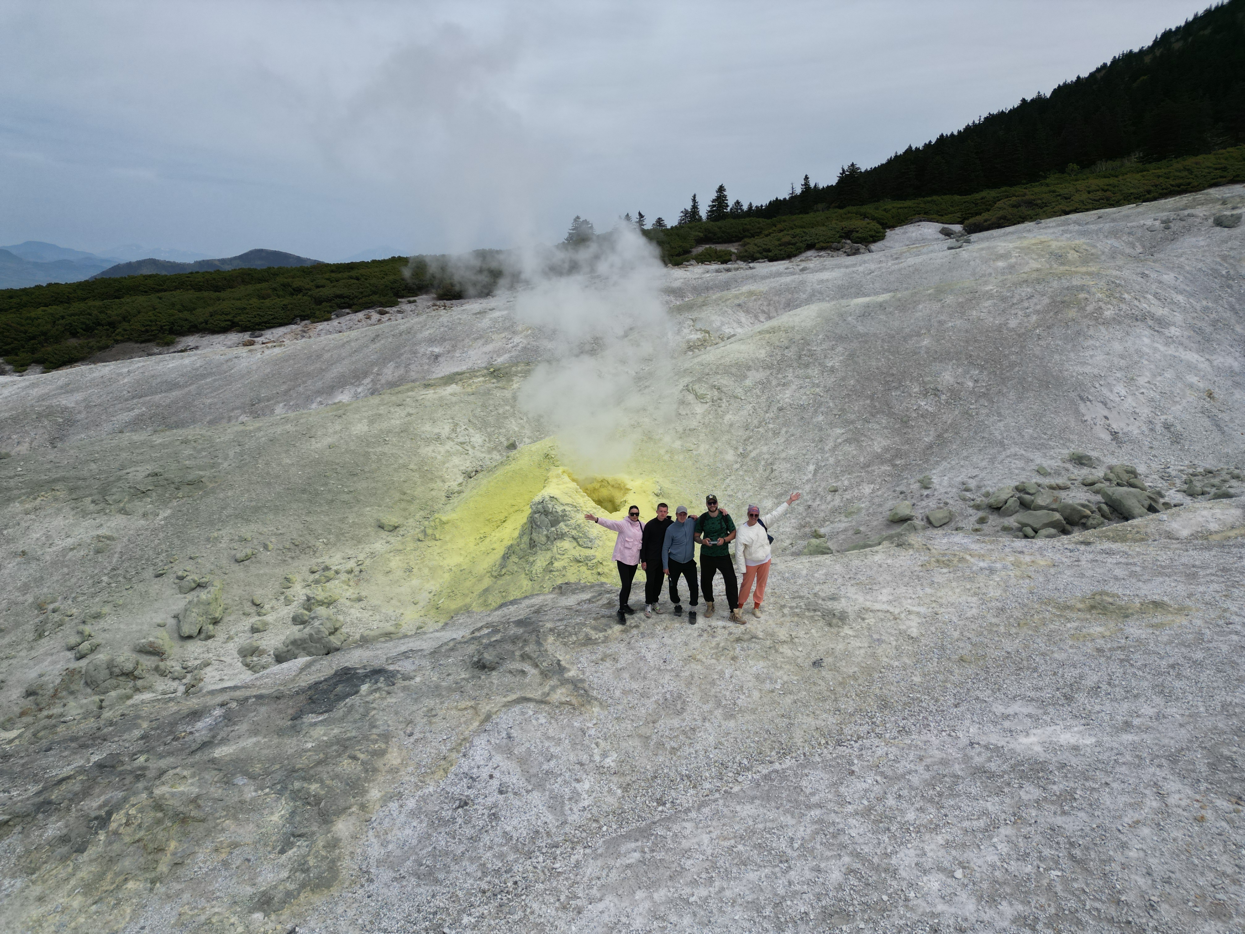 Сегодня мы отправимся в самое сердце Кунашира - кальдеру вулкана Головина, где нас ждет удивительный мир древнего вулкана с живописными озерами и захватывающими видами.