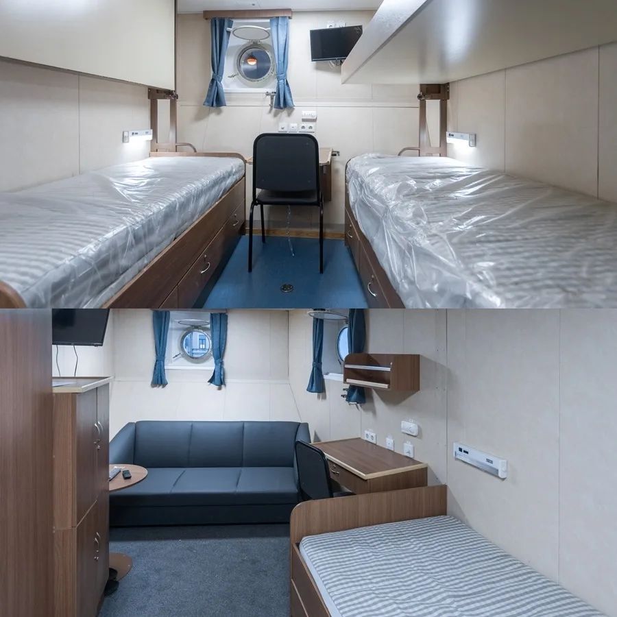 Размещение — четырехместные каюты с полным набором удобств.