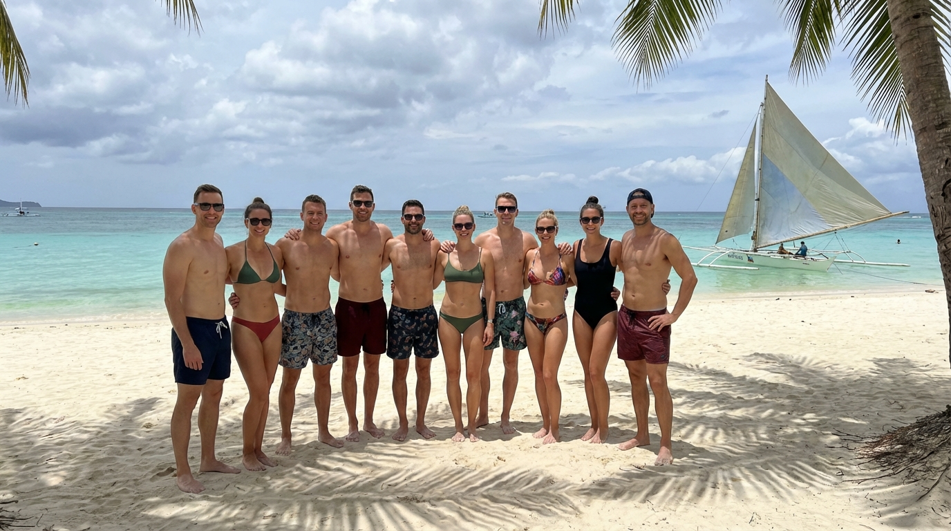 всей нашей отличной группой мы встаем опять рано да да опять рано но обещаю это в последний раз ведь дальше мы летим на остров Боракай
