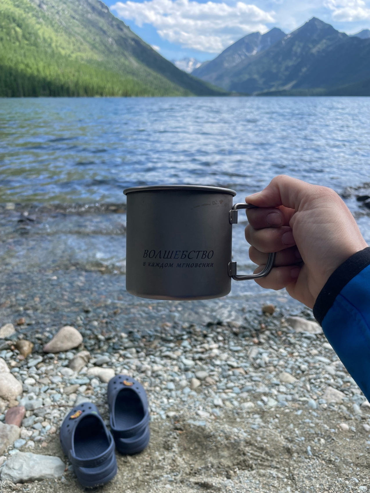 К обеду будем на Нижнем Мультинском озере. Наслаждаемся видами, фотографируемся. Загружаем все наши вещи в катер, а сами идем гулять вдоль озера до первого водопада, он же водоскат Шумы!