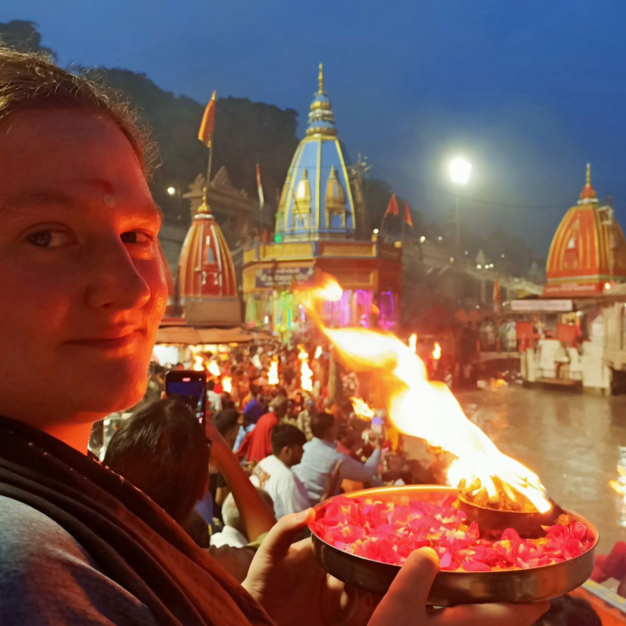 А на закате мы поучаствуем в огненной церемонии Ганга Аарти, или подношение реке, которая проходит каждый день.