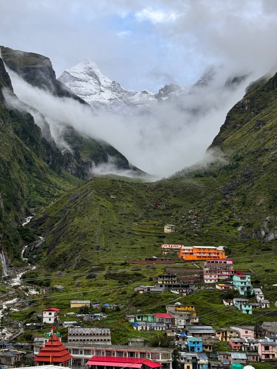 — Храм Бадринатх, посвященный Вишну, находится на месте слияния горной реки и горячих термальных источников, одно из четырех самых священных мест во всей Индии, доступное для иностранцев