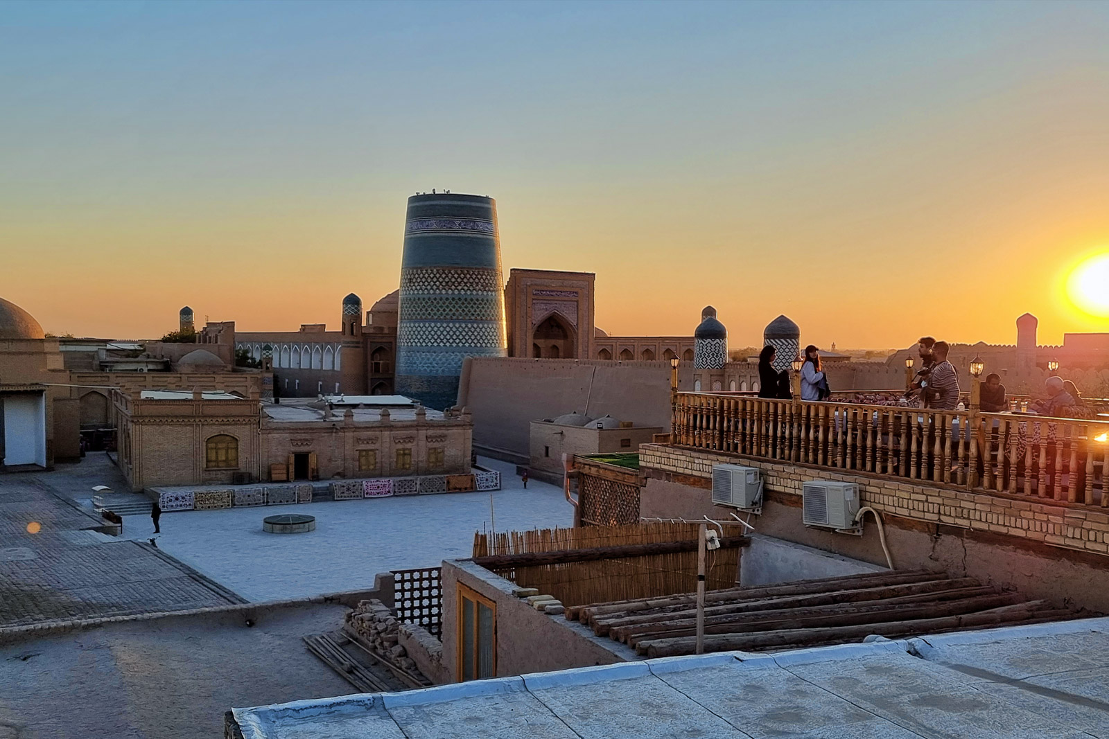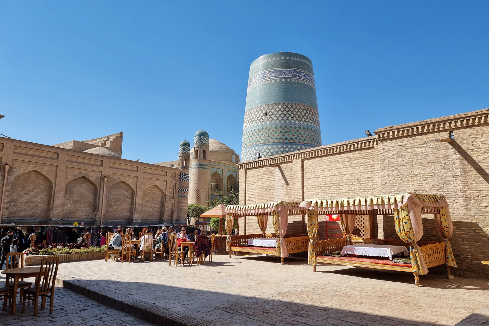 Завершит наш день величественное медресе Мухаммад Амин-хана — самое большое в Хиве, напоминающее о былом могуществе ханства. Его монументальные стены — достойный эпилог нашего путешествия по городу-сказке.
