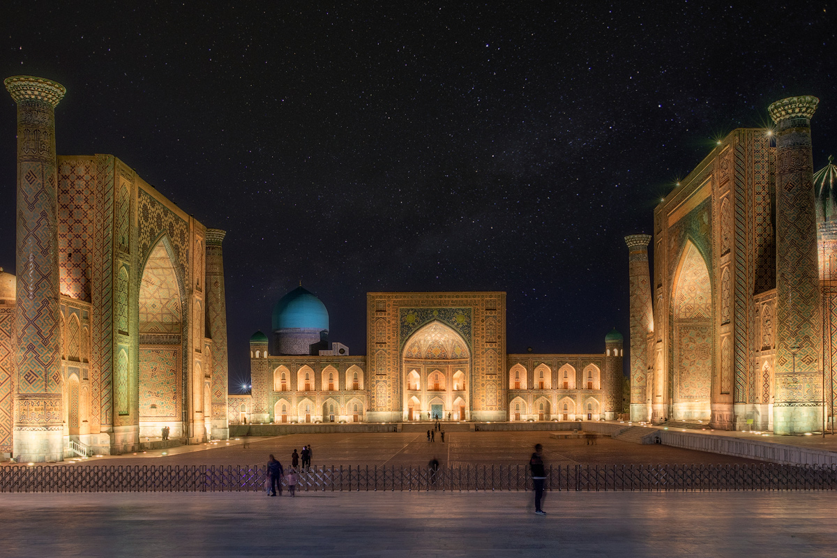 19:00 По прибытии — размещение в уютном отеле и вечерняя прогулка к главной жемчужине Узбекистана — площади Регистан. В мягком свете огней и во время впечатляющего светового шоу древние медресе оживают, раскрывая величие ушедших эпох. Это зрелище, которое действительно захватывает дух.