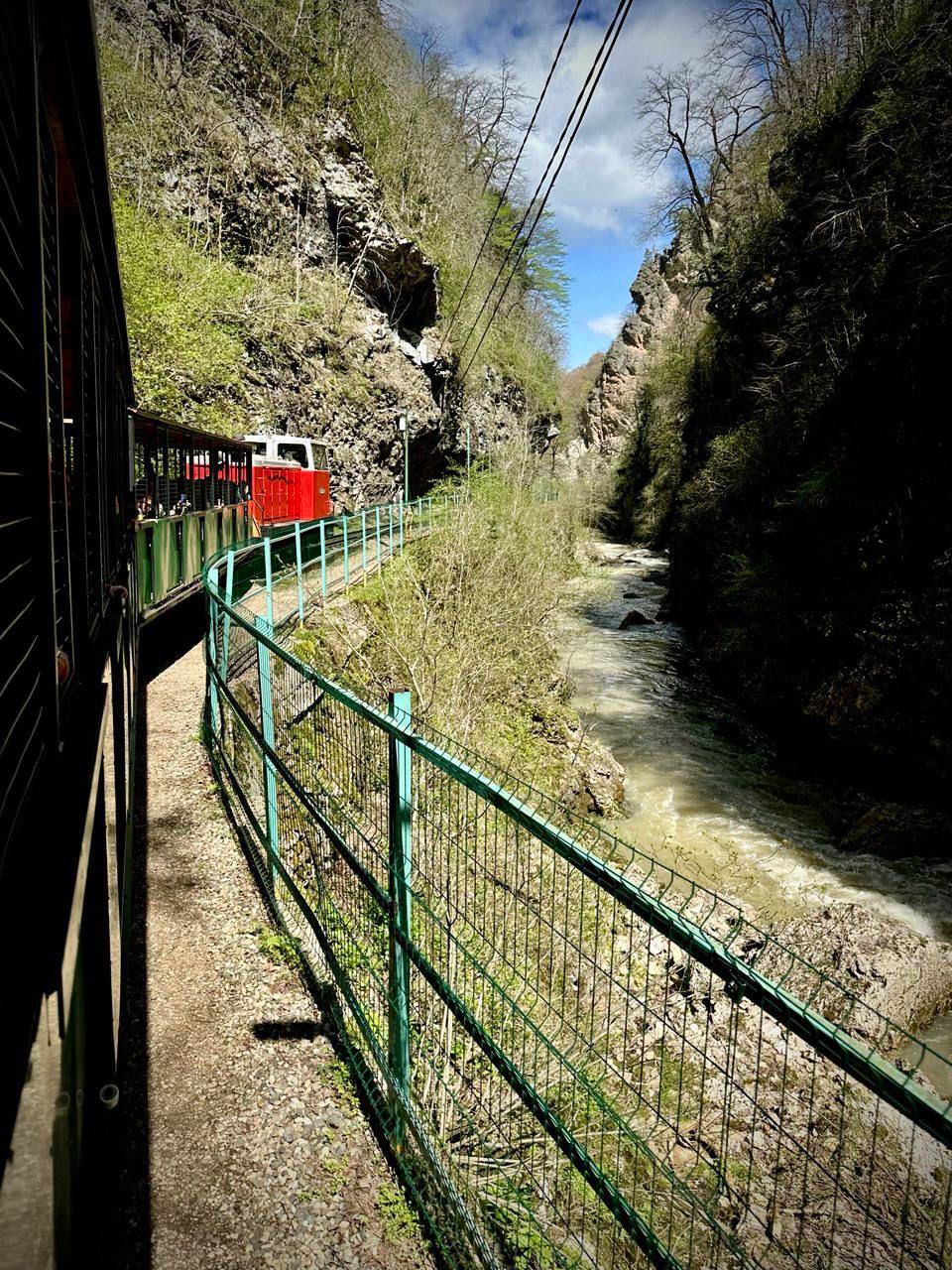 На автобусе мы доедем до станции Гуамка, а дальше экскурсионный поезд с аудиосопровождением домчит нас до середины Гуамского ущелья.