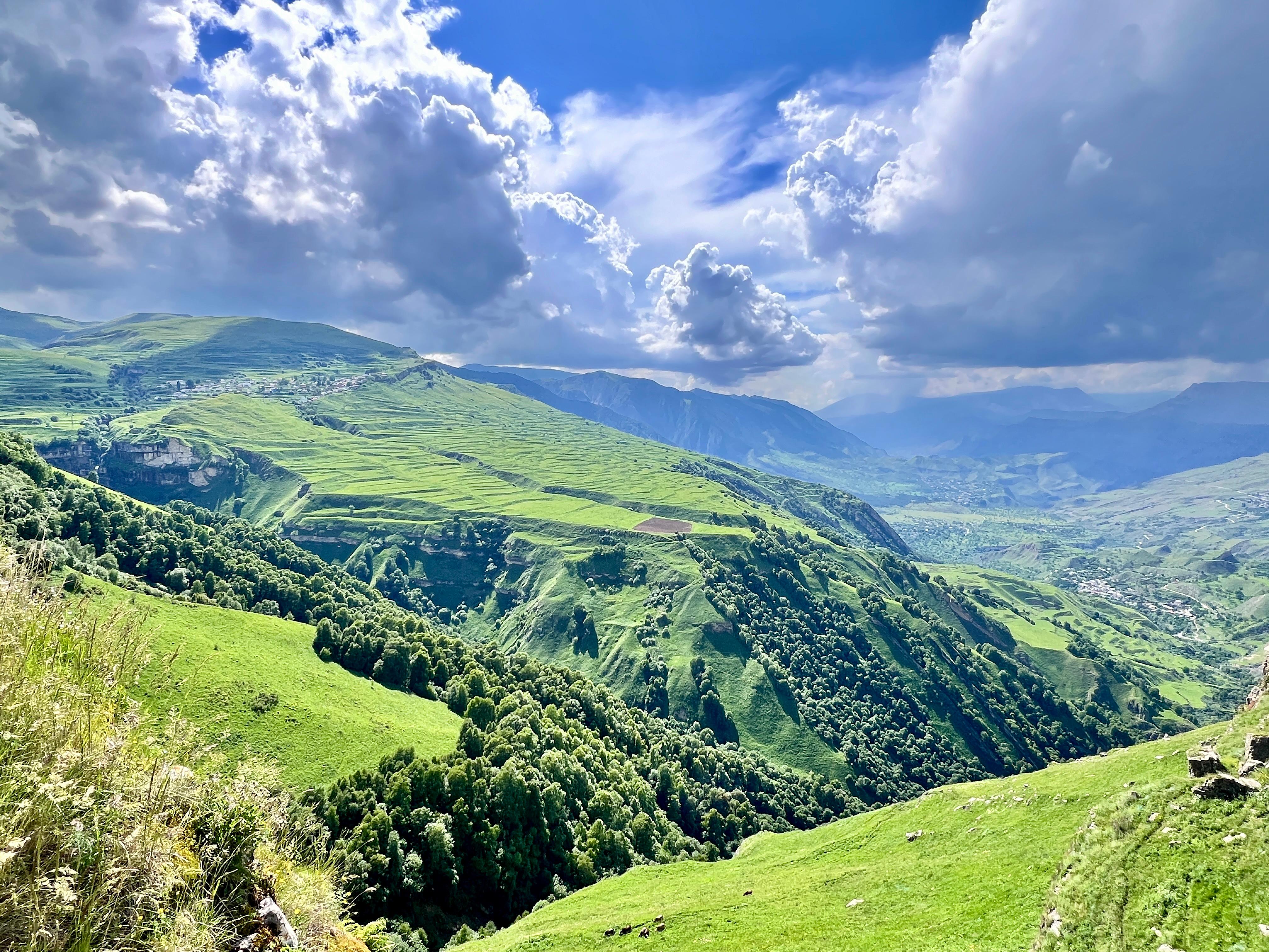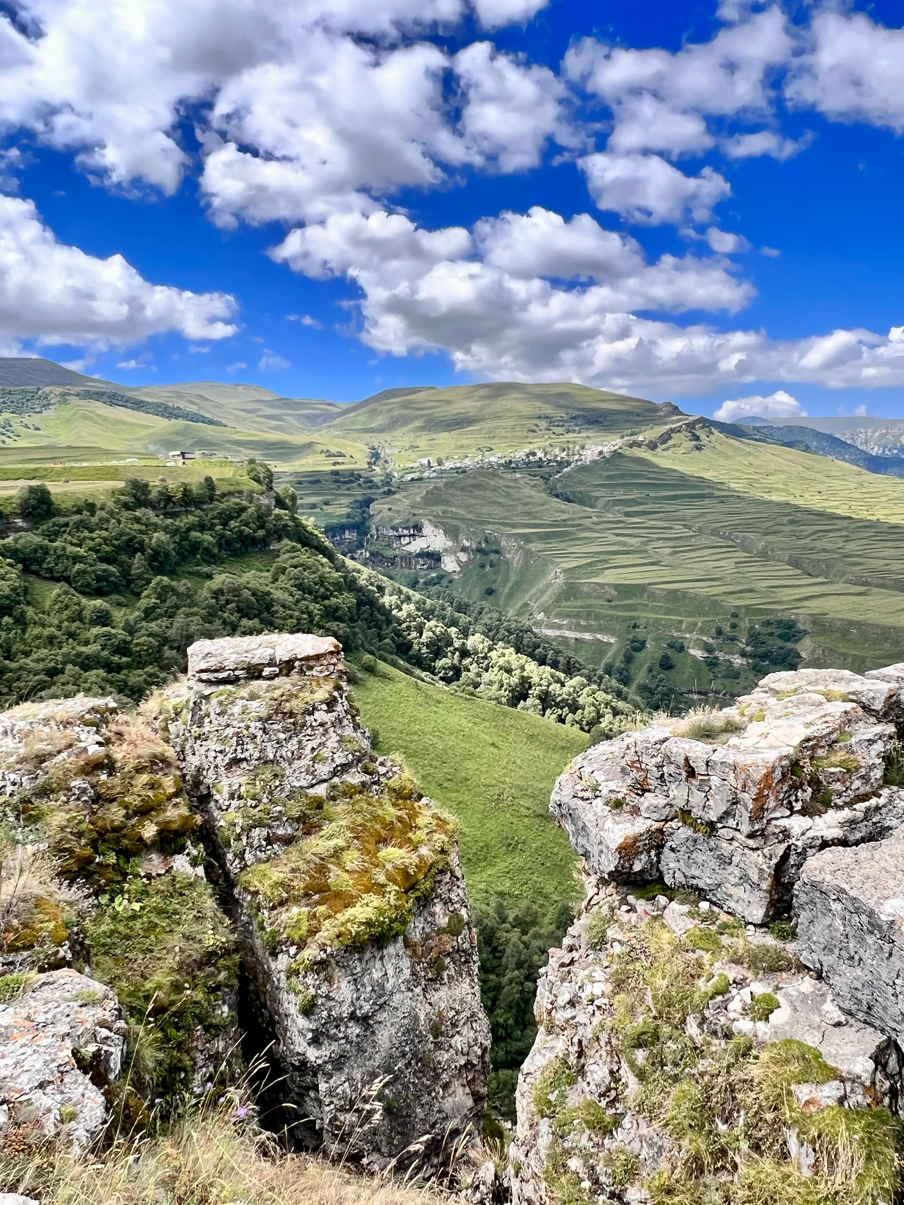Могучие скалы, словно стражи древних легенд, возвышаются над изумрудными долинами, а кристальные водопады рассыпаются бриллиантовой пылью на солнце. В местной кухне вас ждёт настоящий праздник вкуса: ароматные чуду с сочной начинкой, нежные курзе, тающие во рту, и легендарный хинкал каждое блюдо расскажет вам историю Дагестана лучше любых слов.