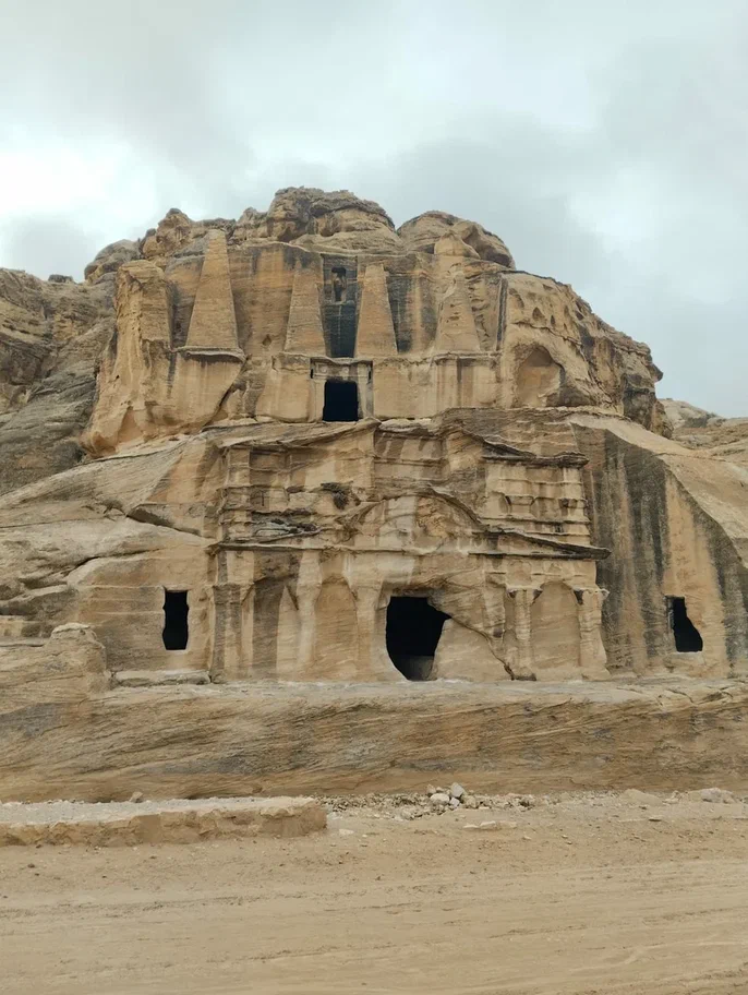 Все здание полностью высечено в скале. Истинное его назначение не ясно до сих пор: святилище, храм, дворец, усыпальница...