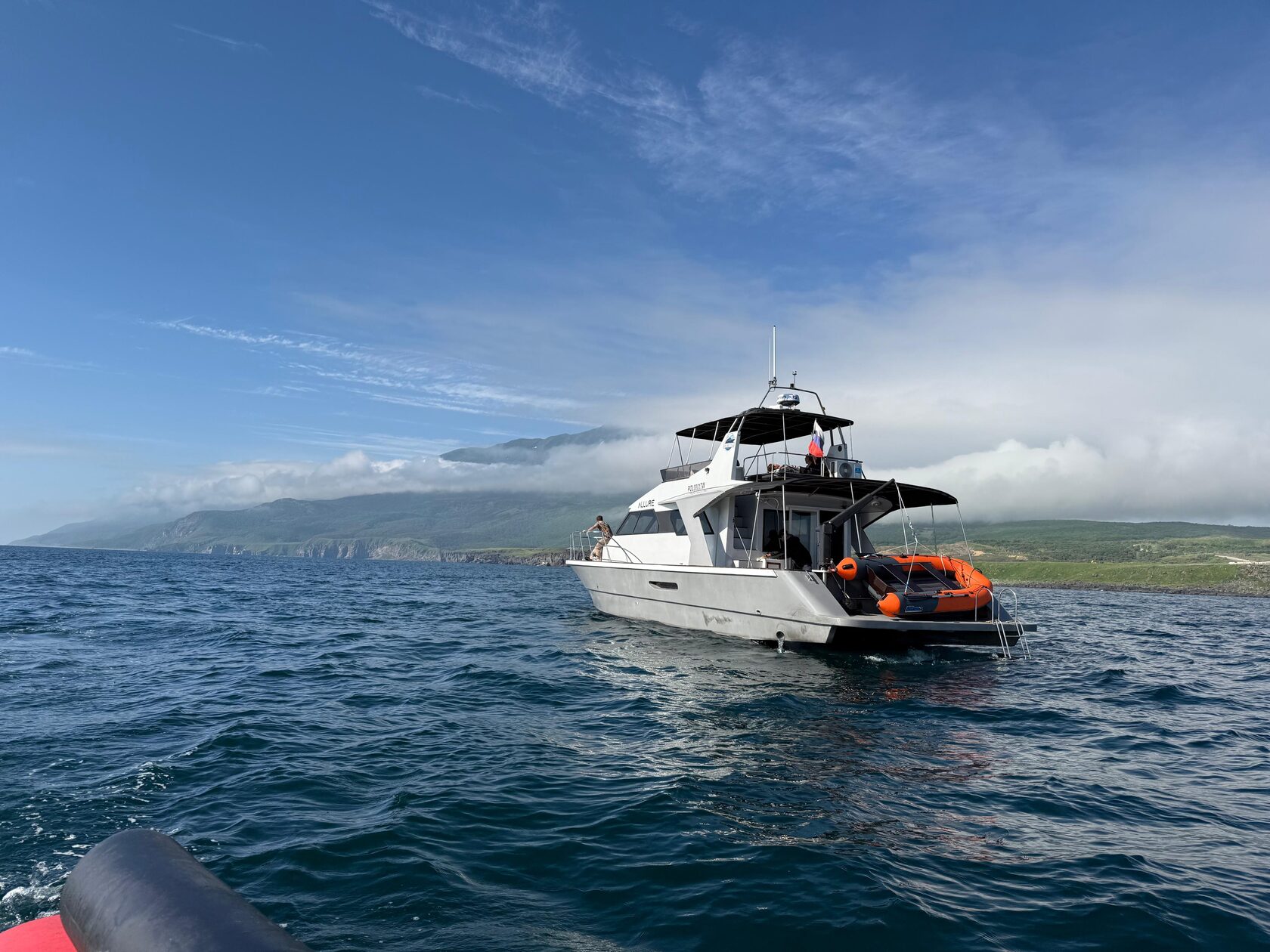 Cегодня насыщенный день! Во-первых, выходим в море на премиальной яхте Allure. Пройдем вдоль живописных бухт и скал-останцев, полюбуемся вулканами и выходами лавы. Часто можно встретить кого-то из морских обитателей: киты, косатки сивучи, дельфины. Сделаем остановку на фантастической локации Око Дракона, куда можно попасть только с воды. Высадимся с яхты на берег на лодке, чтобы увидеть каменную арку из лавовых потоков и вулканическую породу в форме чешуи. Морская прогулка займёт 45 часов. На борту будут чай и игристое и сет закусок от шефа ресторана Камуй Котан.Во-вторых, поедем к знаковым местам острова — Черные скалы и базальтовые колонны, и главную жемчужину — Белые скалы. До локаций едем прямо по белоснежной кромке песка вдоль берега Охотского моря. Ветер, чайки, брызги и чистый драйв! На Белых скалах совершим короткий трекинг вверх по тропе, чтобы полюбоваться местом с высоты и сделать эффектные фото.