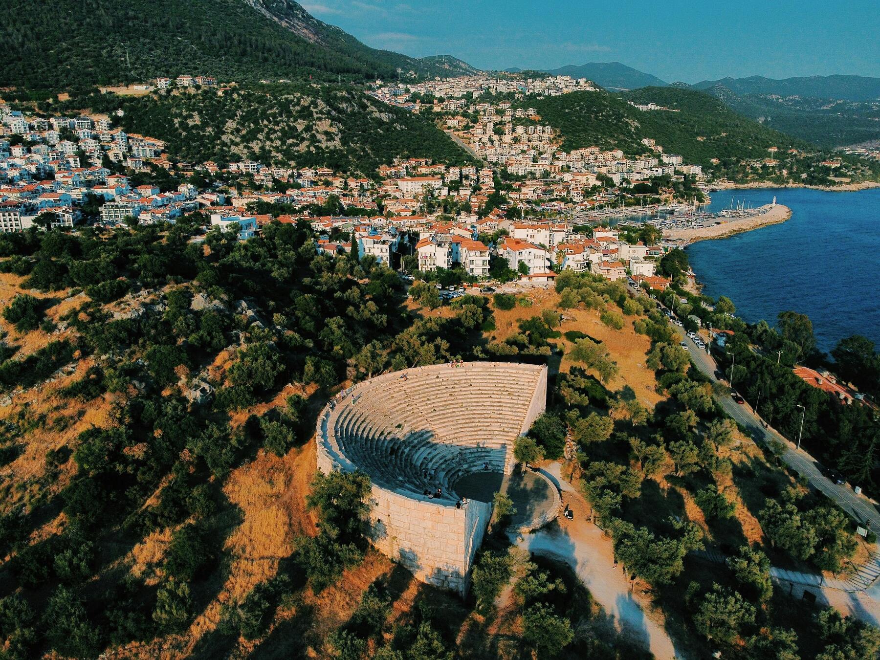 Среди жилых кварталов и кафе с видом на воду притаился ликийский саркофаг Iv века до нашей эры — аккуратная гробница с изящной остроконечной крышей, которая веками остаётся безмолвным свидетелем ушедших эпох. Неподалёку раскинулся античный театр Антифеллос: его каменные ступени смотрят прямо на море, создавая впечатление, что представление здесь вот-вот начнётся.
