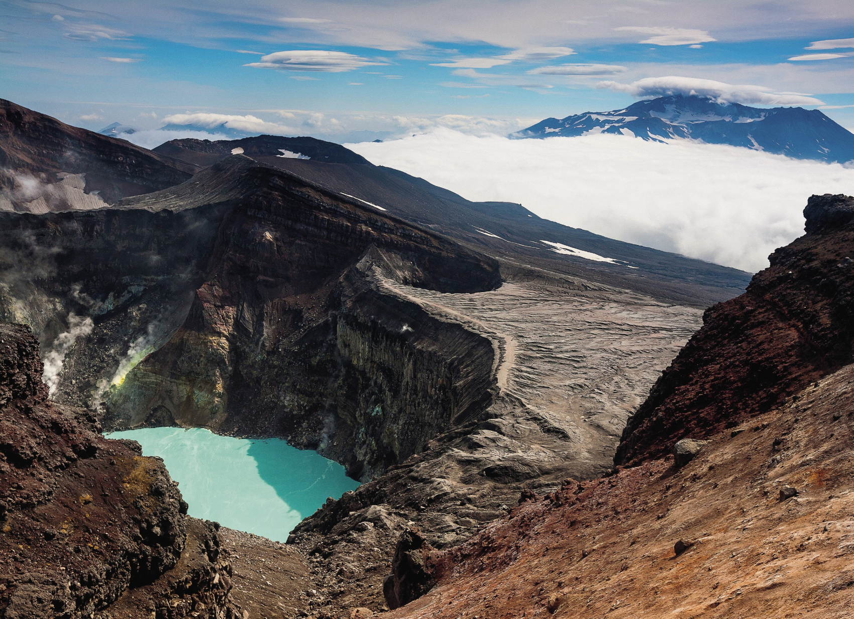 Знакомство с окрестностями трека вокруг Толбачика. Каньон реки студёной. Зеркальное озеро. Виды на все вулканы Ключевской группы.
