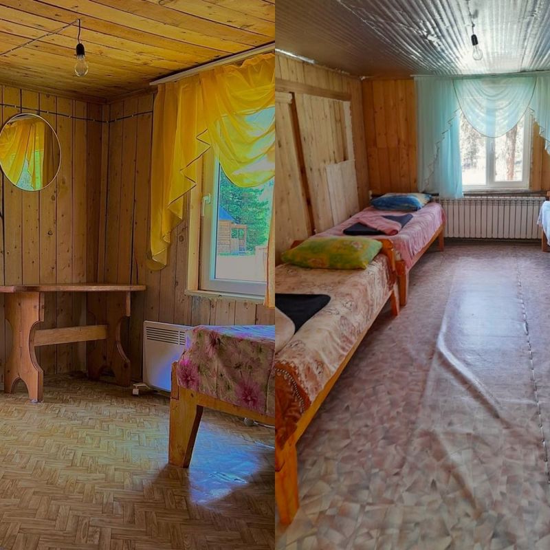 Проживание: гостевые домики на базе. Размещение 2-3-4-местное, мужчины и женщины отдельно. Возможно размещение семейными парами. Удобства: уличный туалет, баня.