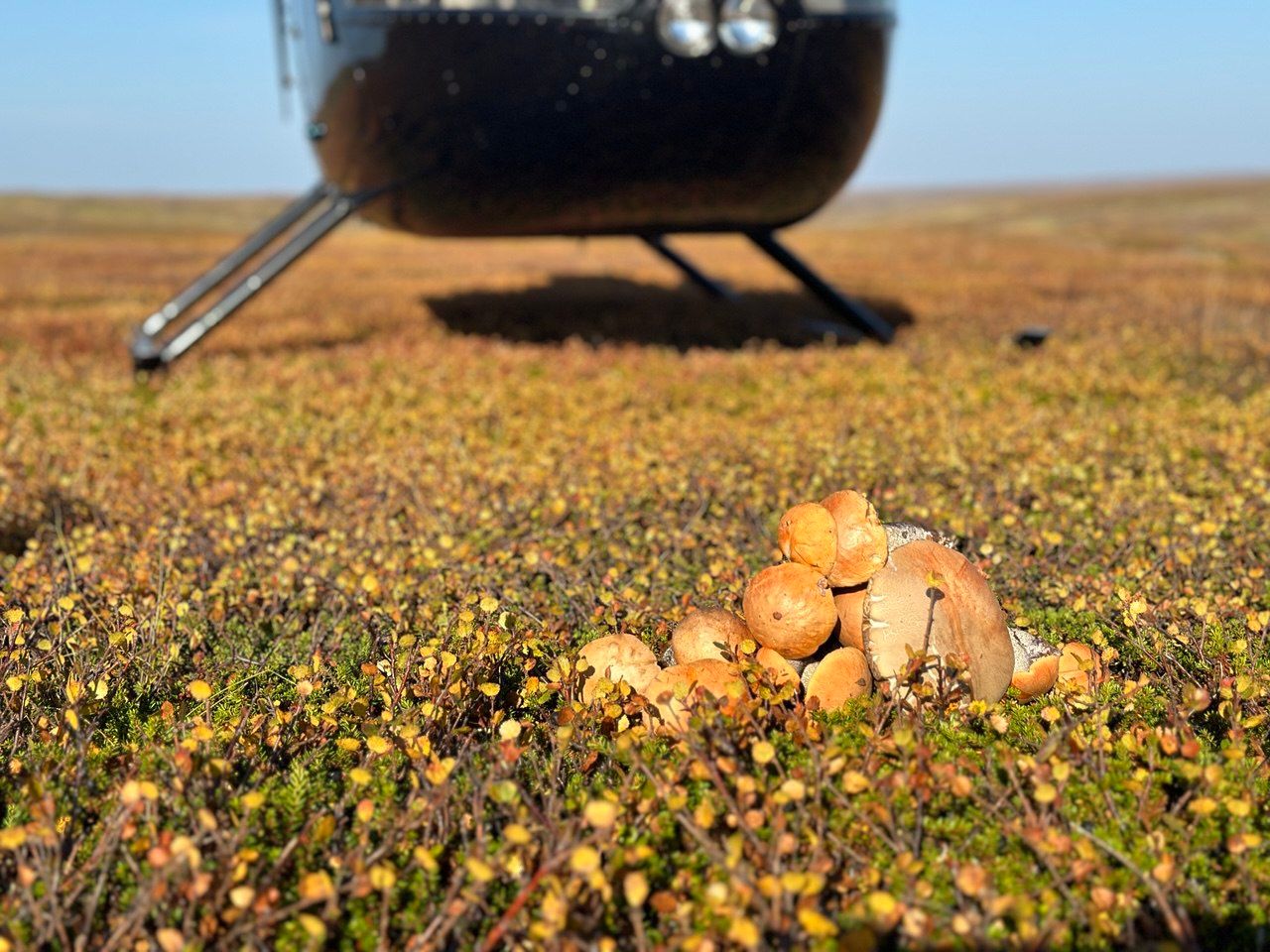 08:00 — сбор гостей из отелей в Архангельске. Отправление на вертолёте (Robinson R66 или Ми-8) на базу. Время в пути 2,5 часа.