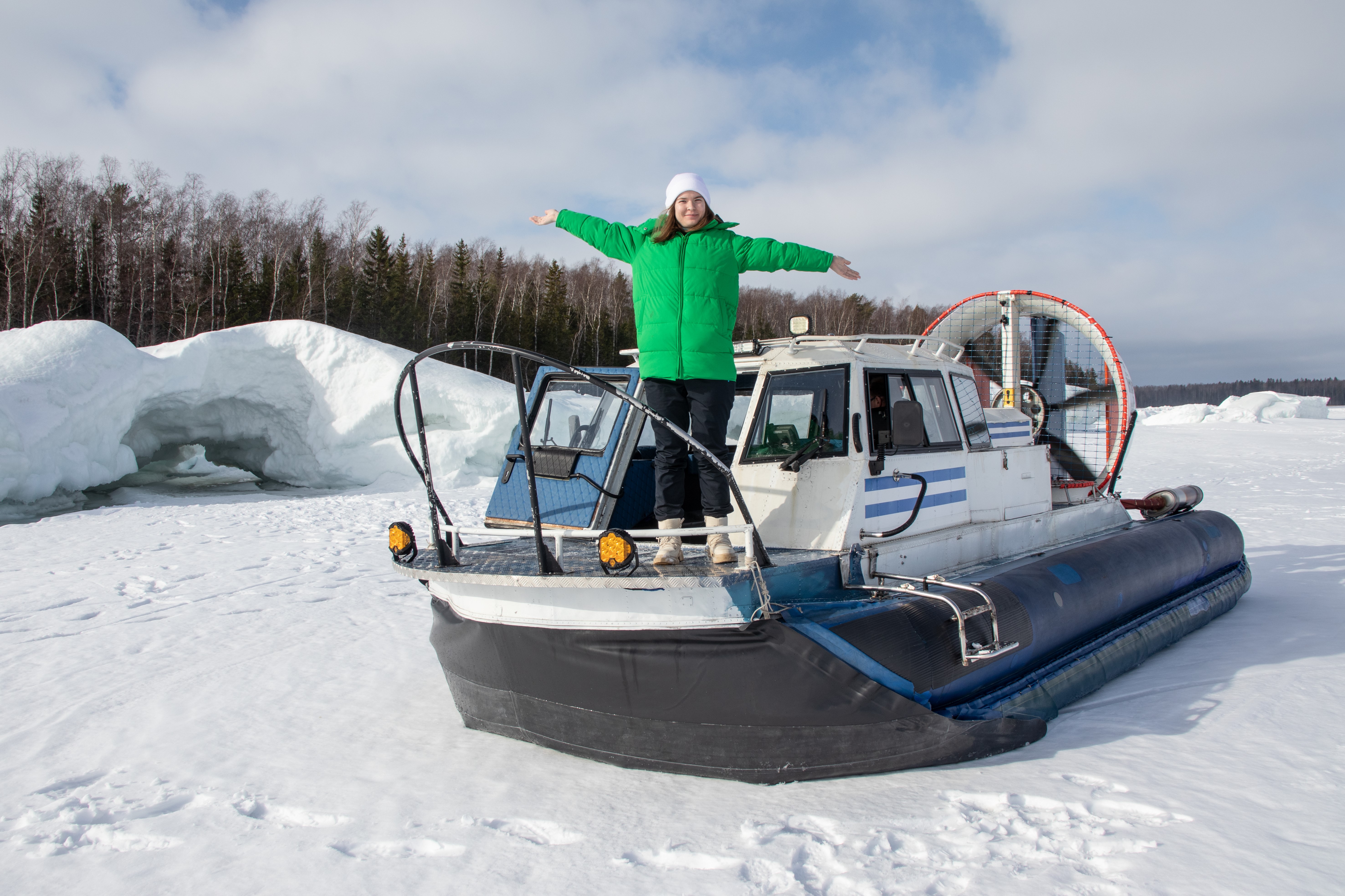 Примерно: середина января – середина апреля. Когда Онежское озеро замерзает, на остров Кижи мы отправимся на хивусах – судах на воздушной подушке. В дороге мы проведем ориентировочно 1,5 часа в одну сторону.