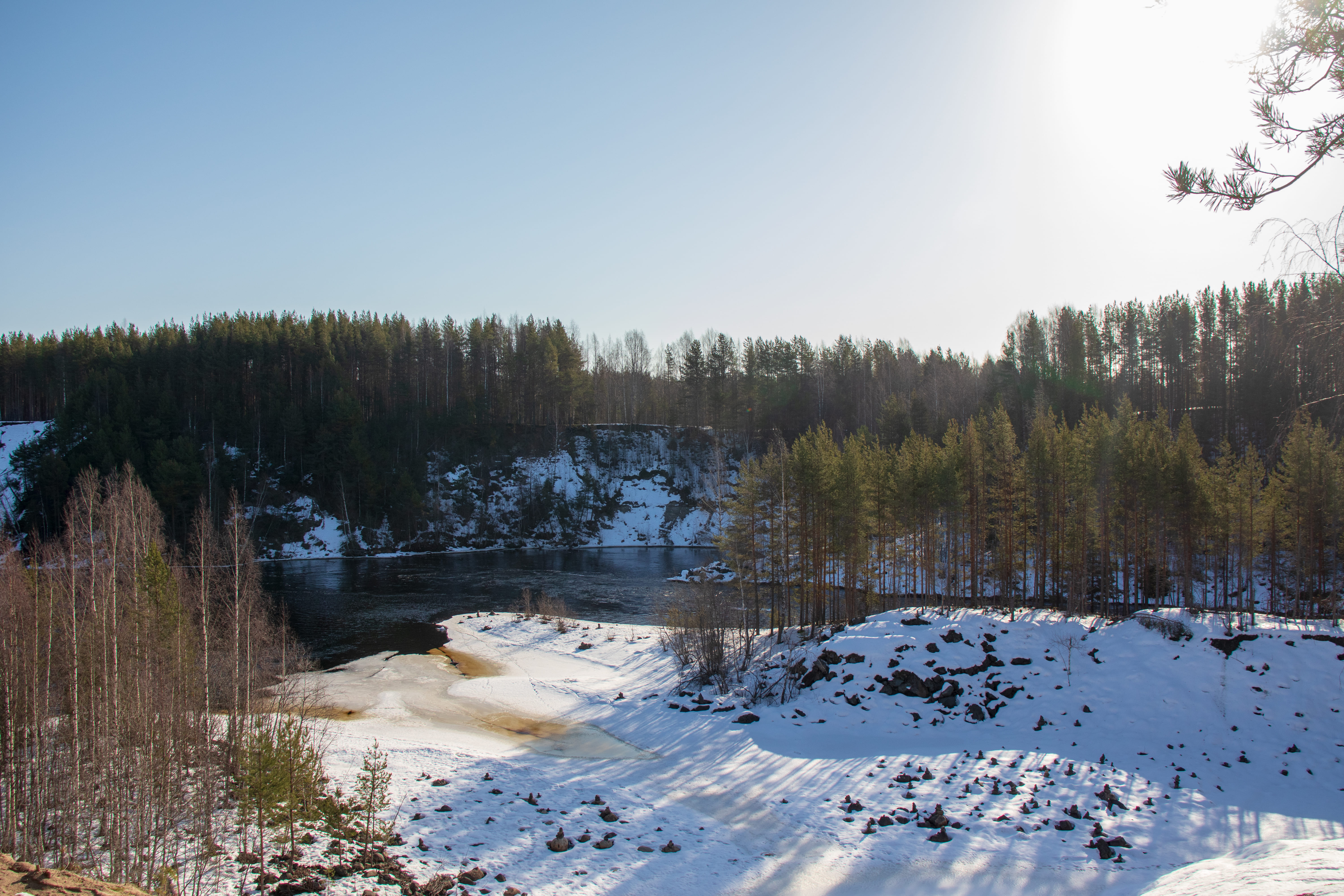 После чего отправимся на вулкан Гирвас – это древний потухший палеовулкан вулкан в возрастом более 1,8 млрд лет, находящийся в русле реки Суна. Сам вулкан был почти полностью разрушен природой и временем. Сохранились лишь более 20 застывших лавовых потоков толщиной до 32 метров и следы кратера.