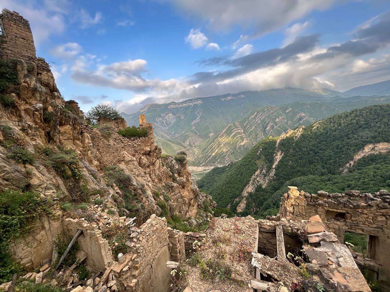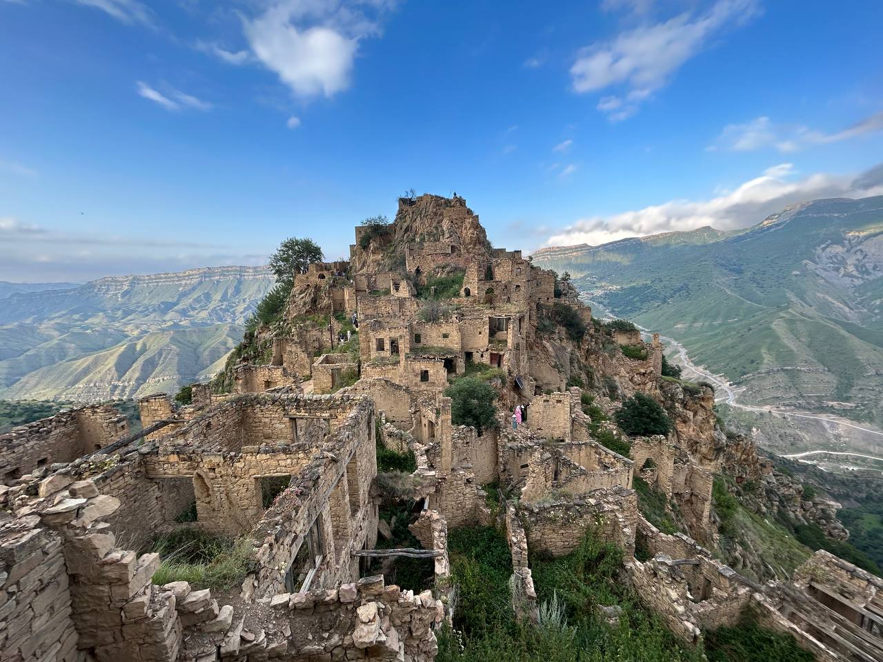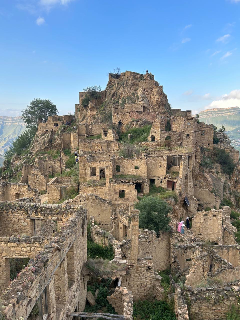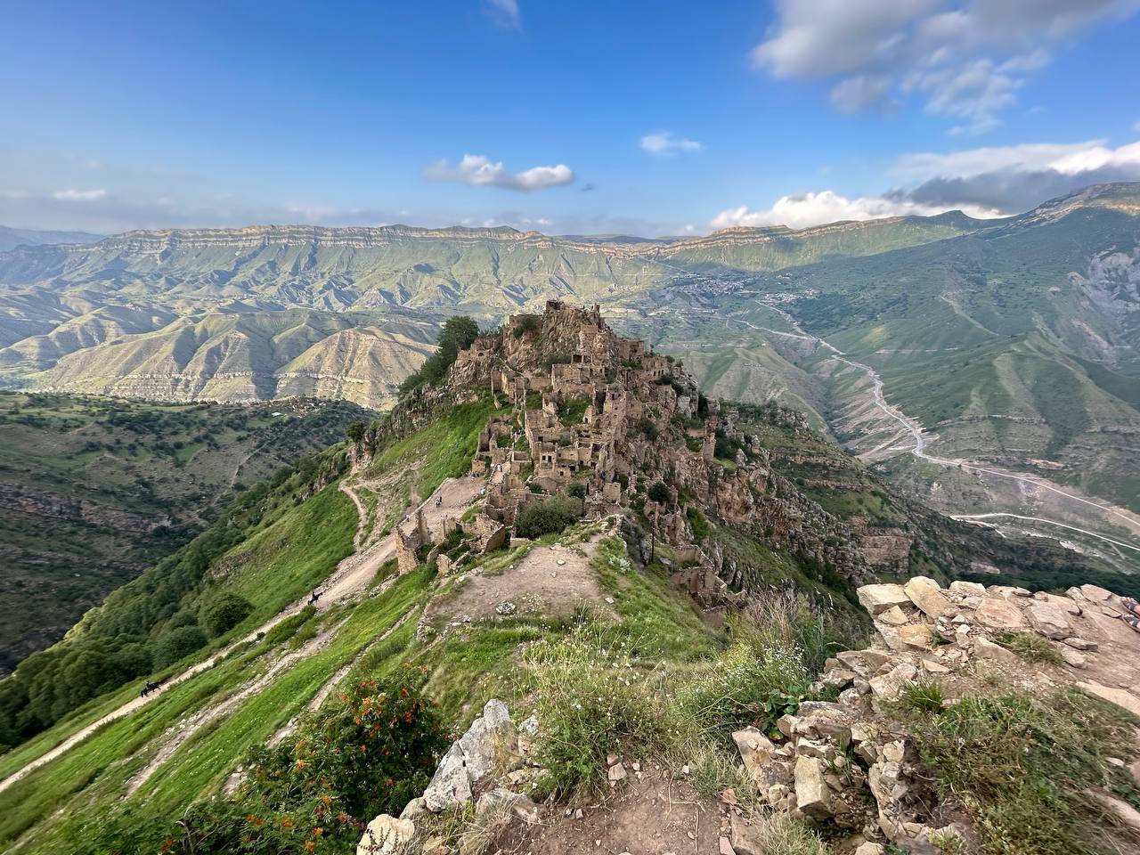 Село призрак Гамсутль, потрясающий вид со стороны на село Гуниб. Несмотря на то, что горный аул Гумсутль давно заброшен и находится в труднодоступном месте, высоко в горах, поток туристов туда не иссякает. Еще несколько десятилетий назад в аул вела автодорога, но сегодня от нее осталась только узкая тропа.