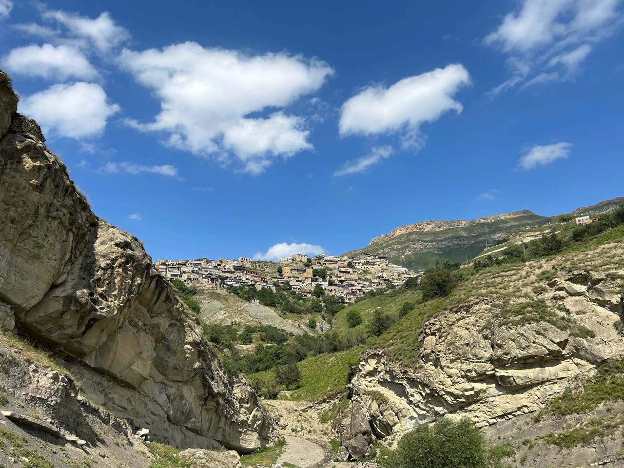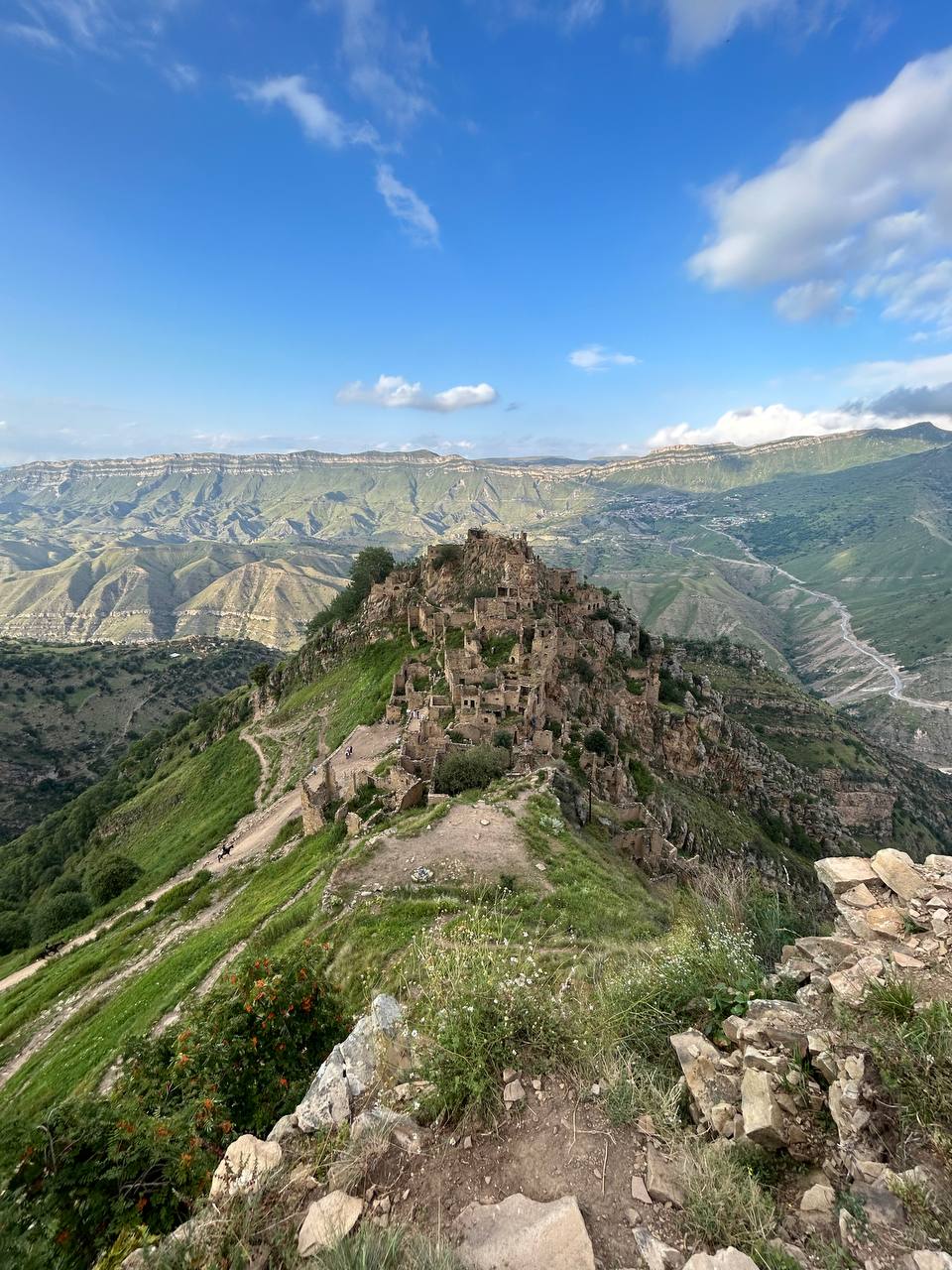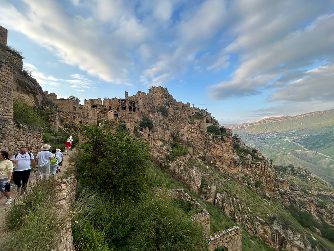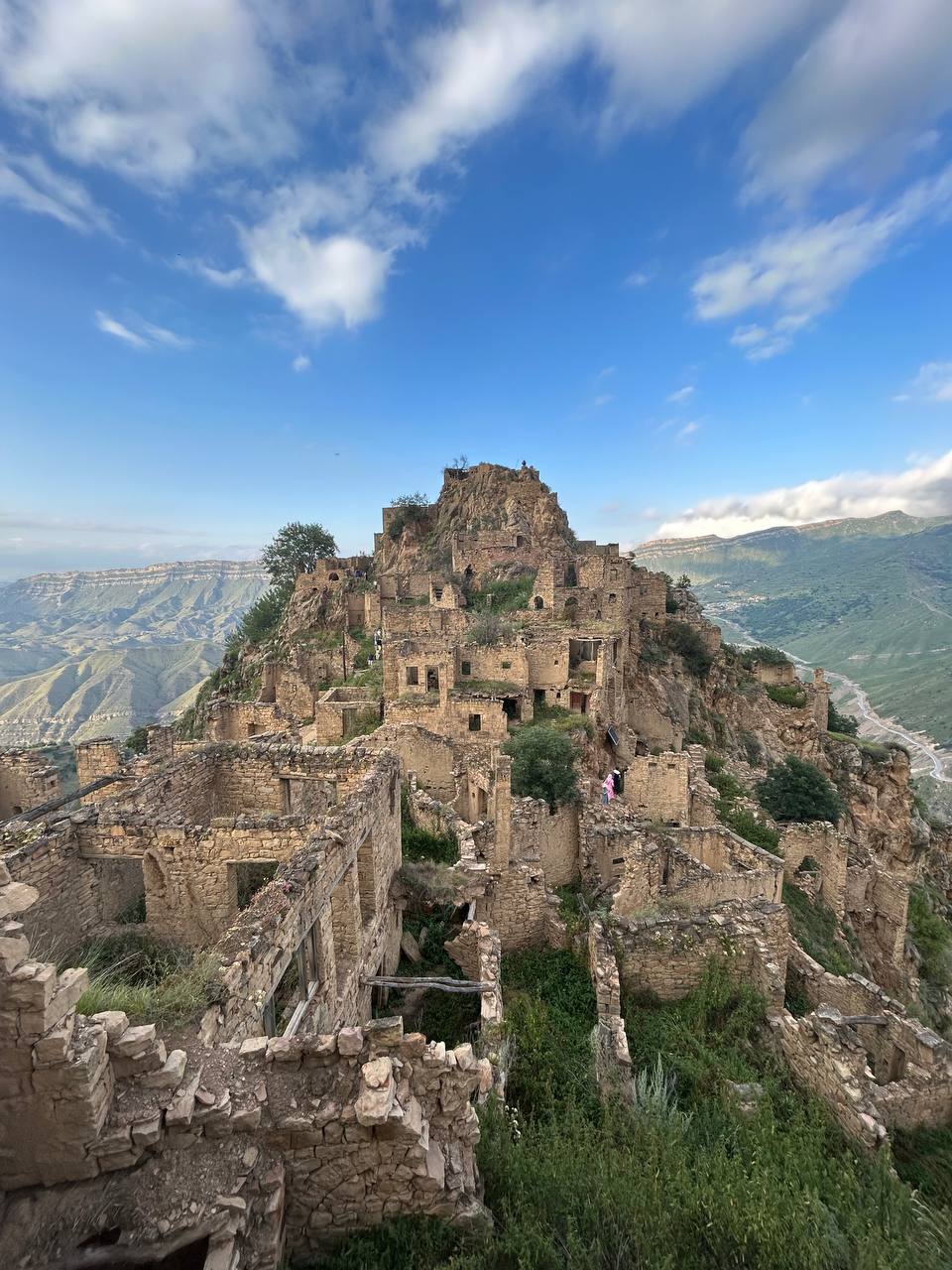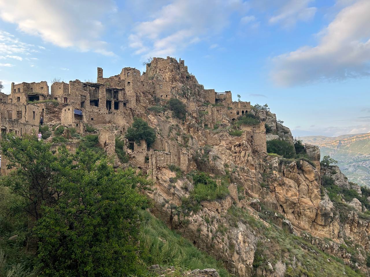 Село призрак Гамсутль, потрясающий вид со стороны на село Гуниб. Несмотря на то, что горный аул Гумсутль давно заброшен и находится в труднодоступном месте, высоко в горах, поток туристов туда не иссякает. Еще несколько десятилетий назад в аул вела автодорога, но сегодня от нее осталась только узкая тропа.