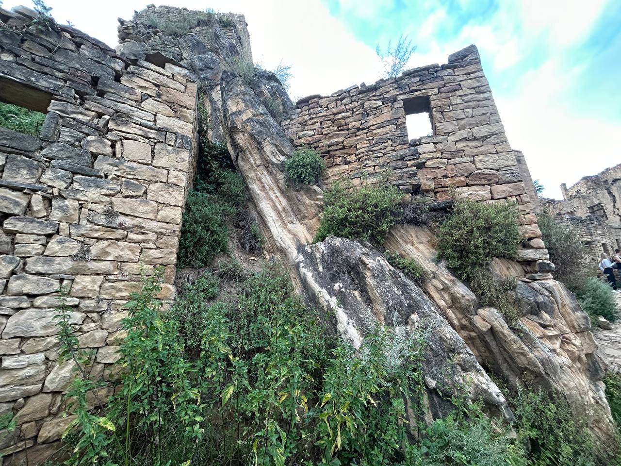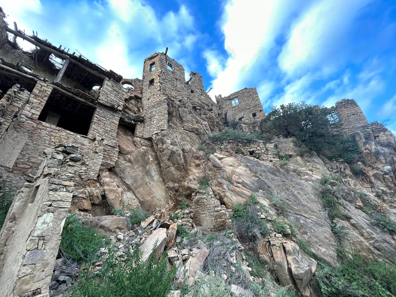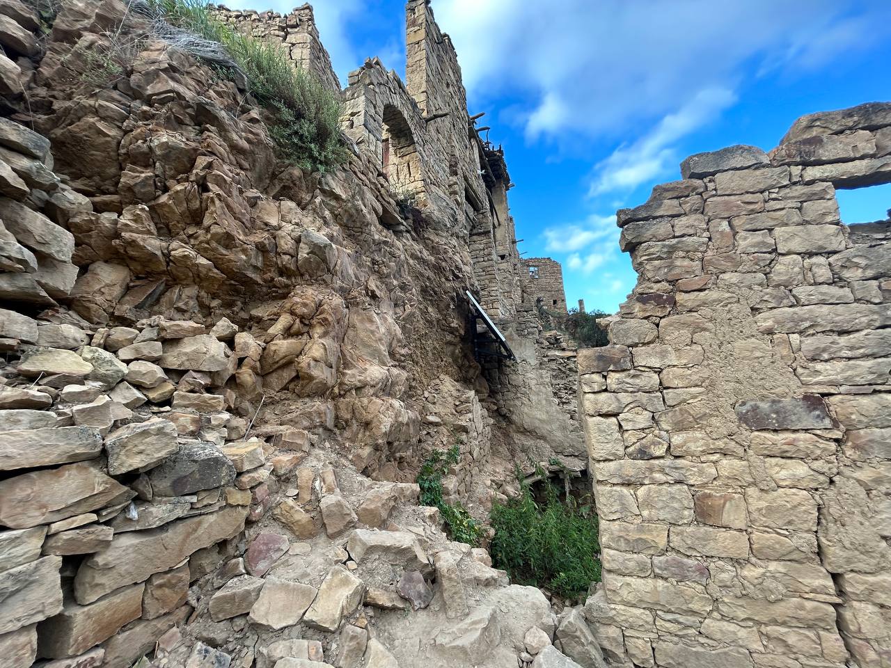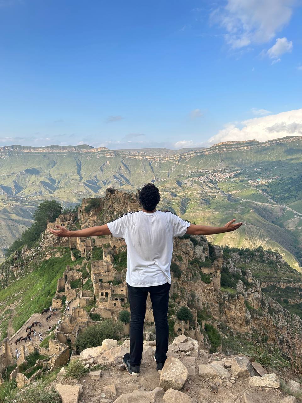 Село призрак Гамсутль, потрясающий вид со стороны на село Гуниб. Несмотря на то, что горный аул Гумсутль давно заброшен и находится в труднодоступном месте, высоко в горах, поток туристов туда не иссякает. Еще несколько десятилетий назад в аул вела автодорога, но сегодня от нее осталась только узкая тропа.