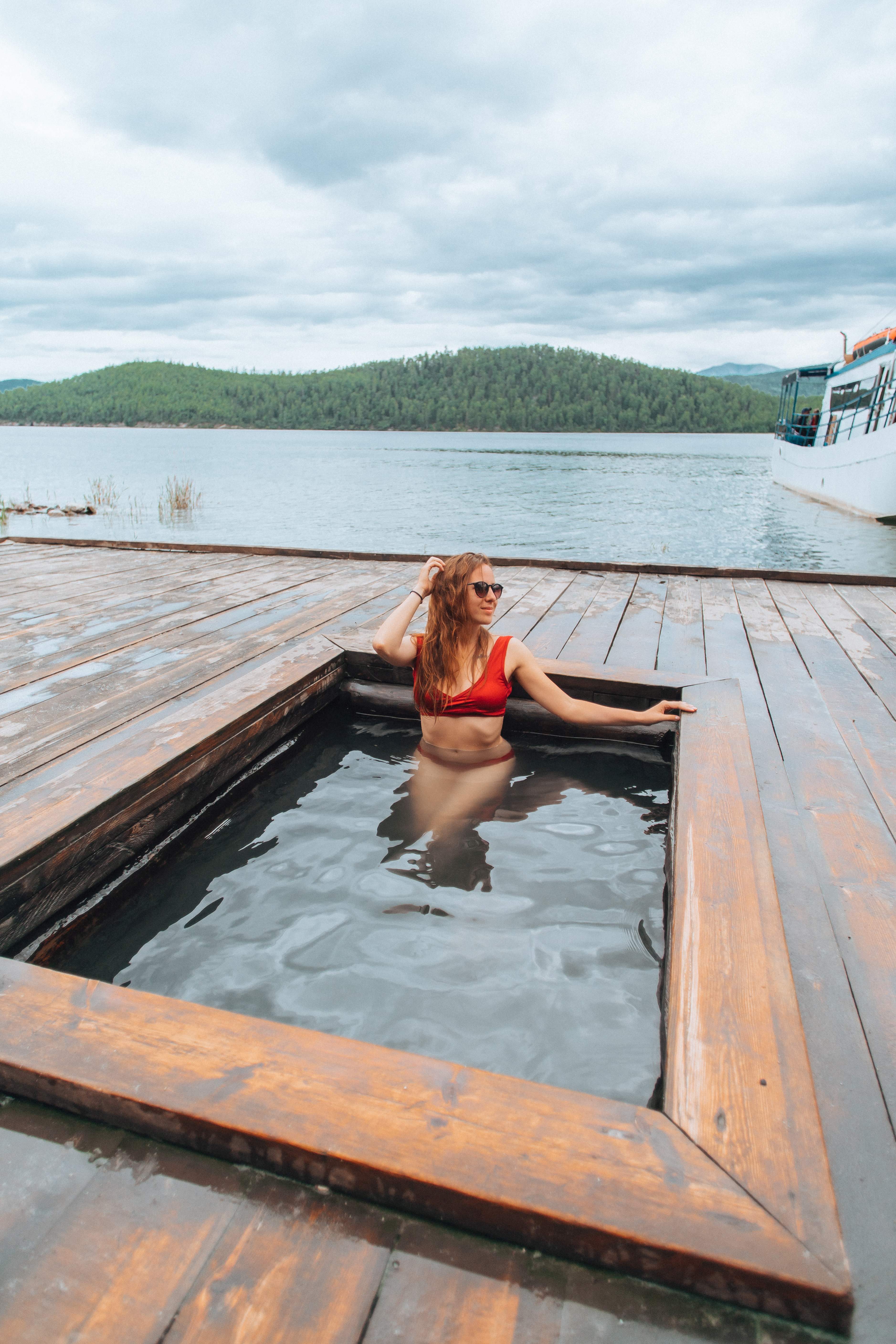 К десяти утра мы в Монахово. Пересаживаемся с автомобиля на катер - и вперёд, по бирюзовой воде залива. Водное путешествие ведёт нас к знаменитой бухте Змеиной. Название звучит опасно, но на деле это - райское место. Представьте: выходите на берег, разделяетесь, и купаетесь в самых тёплых водах залива. А рядом — термальные источники под открытым небом. Горячая, пахнущая сероводородом вода обнимает уставшие мышцы, снимает дорожную усталость, а над головой — бескрайнее небо и тишина тайги. Это настоящая природная спа-процедура, которую Байкал дарит только самым настойчивым.