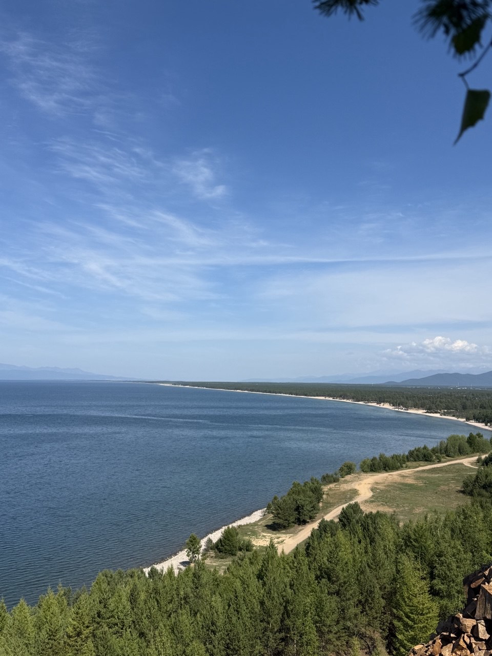 После обеда мы поднимаемся на смотровую площадку в Монахово. Отсюда Чивыркуйский залив виден, как на ладони: изумрудный, бескрайний, с лёгкой рябью на воде. Фотографии не передадут этого масштаба - нужно видеть своими глазами.