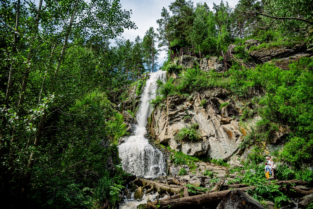 К водопаду ведет пешая тропа, длинной около 2,5 км в одну сторону. На нашем пути будет подвесной мост через р. Катунь. Водопад расположен на облагороженной территории и имеет высоту 12 метров. Обратно также вернемся по тропе.
