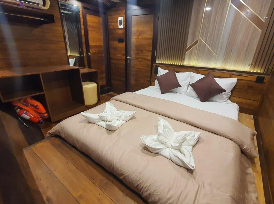 - трёхразовое питание на борту (индонезийская и европейская кухня)/полдник/ужин-Bbq на острове Миоскин/вода, чай, кофе в течение дня