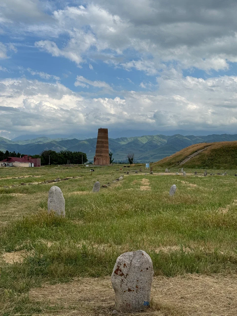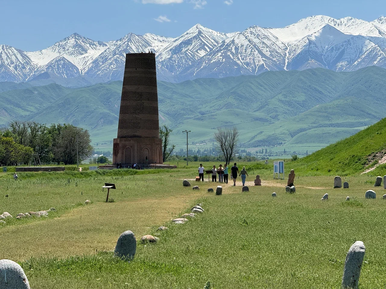 Завтракаем и отправляемся в путь по живописной горной дороге к озеру Иссык-Куль. По пути посещаем башню Бурана и музей под открытым небом. Башня Бурана это древний минарет, строительство которого датируется Ix - Xi вв. Находится в красивом месте на фоне заснеженных горных вершин.