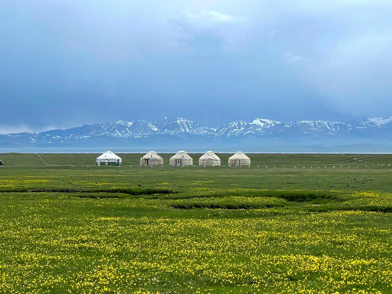 Сегодня нужно плотно позавтракать, потому что нам предстоит дорога к высокогорному озеру Сон-Куль. Озеро расположено на высоте 3016 метров над уровнем моря. С его берегов открывается невероятная панорама на отроги Тянь-Шаня. Озеро Сон-Куль окружено пастбищами (джайлоо), где с конца весны до начала осени кочуют чабаны с юртами, табунами лошадей и стадами овец.