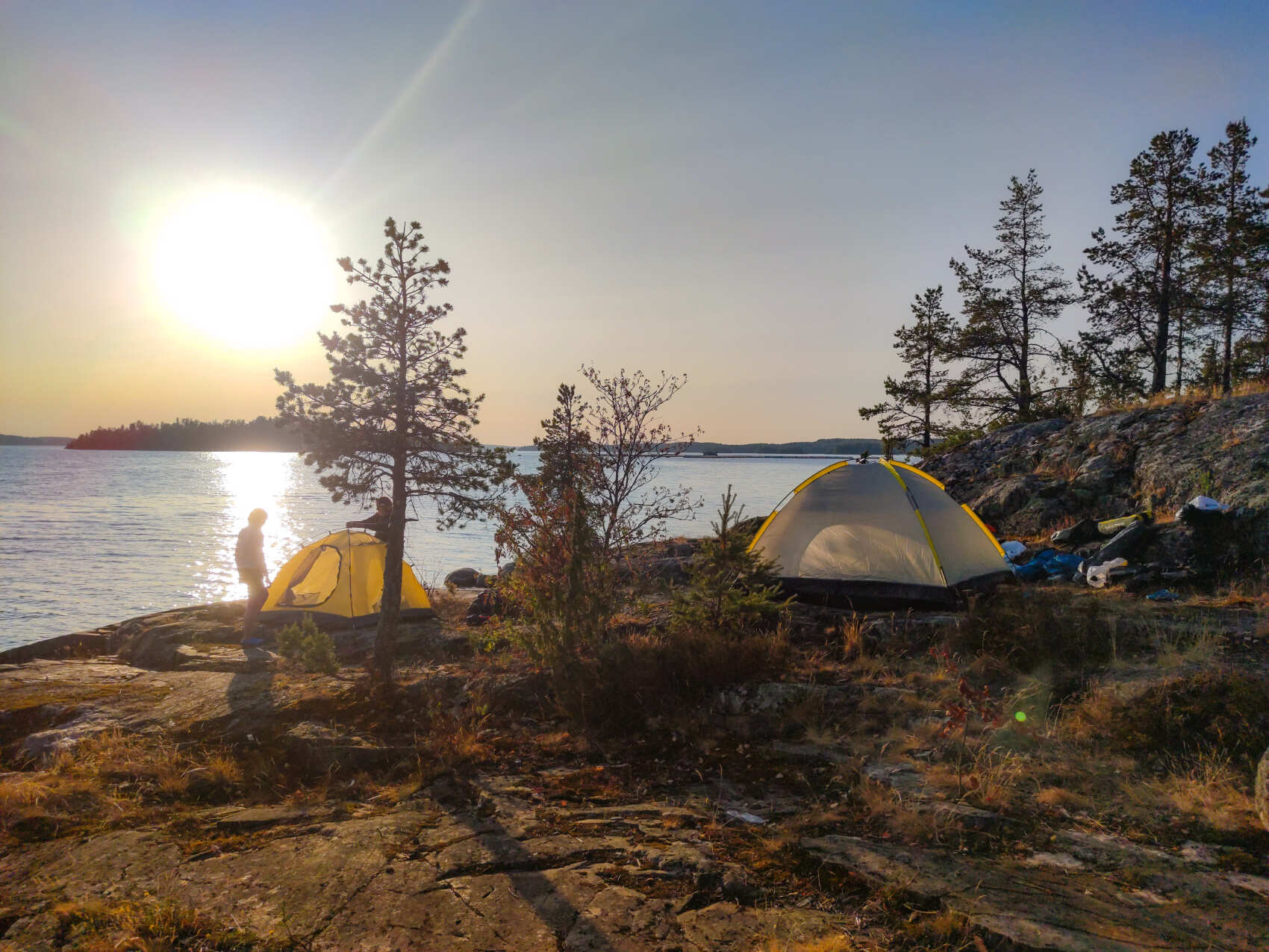 На ночевку остановимся на необитаемом острове — это редкий шанс пожить буквально внутри природы: разбьем палатки прямо у воды, вместе приготовим вкусную еду и встретим закат с кружкой глинтвейна в руках.