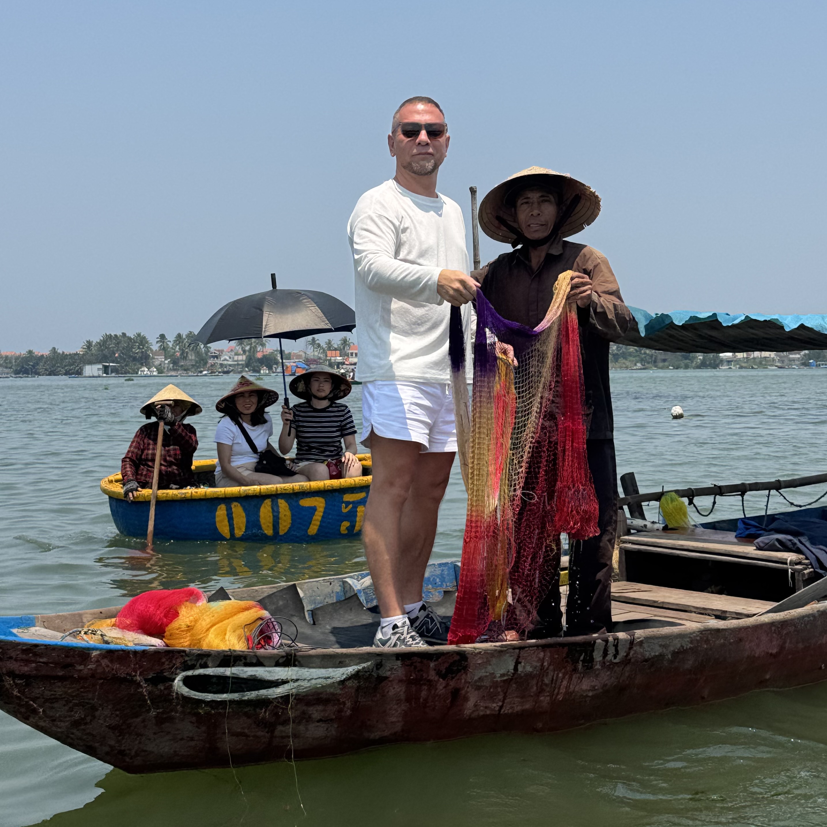 Затем нас ждёт весёлое путешествие по реке через джунгли: круглые вьетнамские лодки, лодки-карусели и караоке прямо на воде. Местные покажут приёмы рыбалки, и мы погрузимся в атмосферу жизни у реки — шумно и по-настоящему. А в конце выйдем в просторную дельту, где время будто замирает.