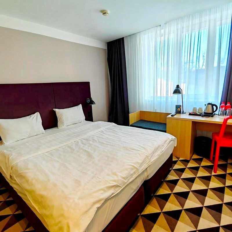 Ваш отель находится в центре города. В пешей доступности много разнообразных кафе и ресторанов.