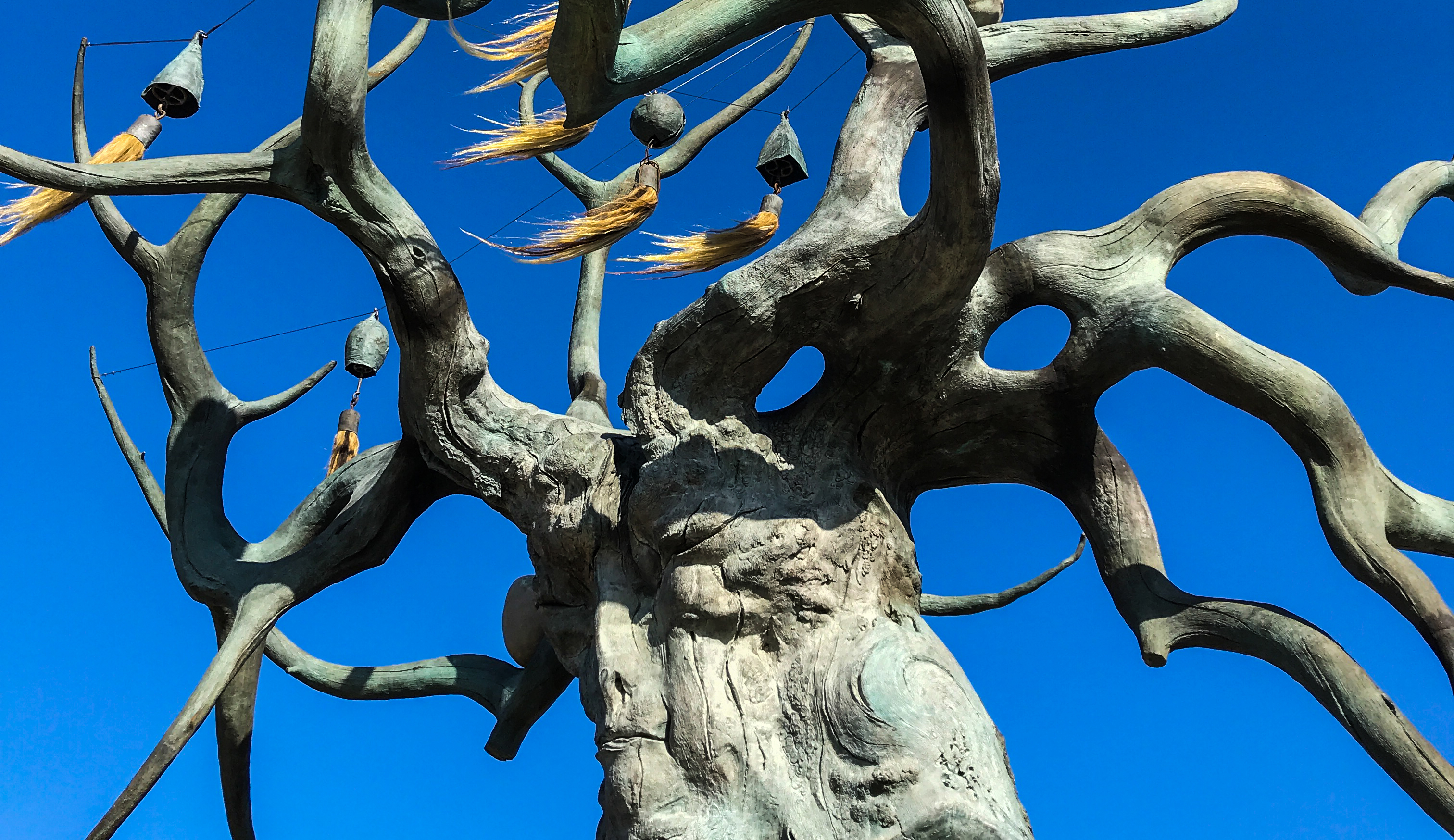 Скала Шаманка днем — подойти поближе, рассмотреть пещеру, покрутить молитвенные флаги. Говорят, там загадывают желания.