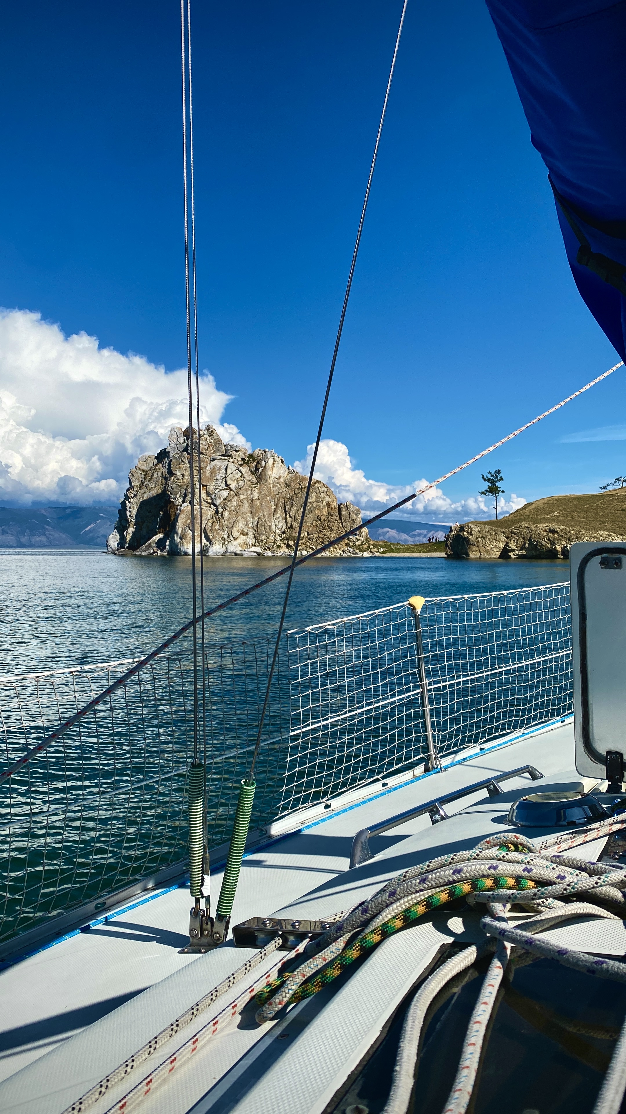 Утром выходим на катере в акваторию Малого моря. Здесь Байкал другой: теплее, спокойнее, но не менее дикий.