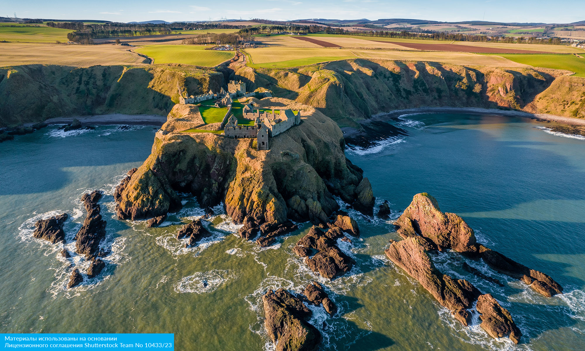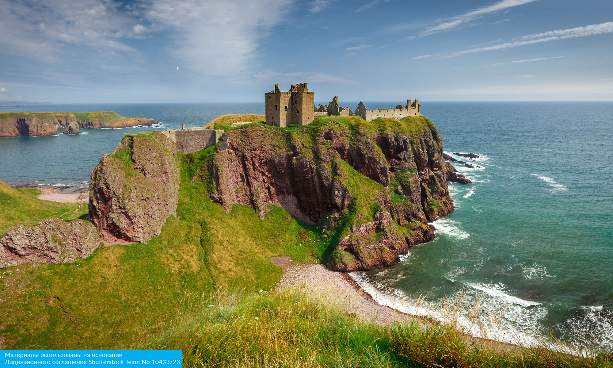 Мы сделаем остановку, чтобы осмотреть средневековую крепость Даннотар, расположенную на высоком утесе, омываемом с трех сторон волнами Северного моря. Эта картина навсегда запечатлеется в вашей памяти. 180 ступеней — и вы на вершине утеса, среди каменных строений, служивших когда-то форпостом на страже морских рубежей Шотландии.