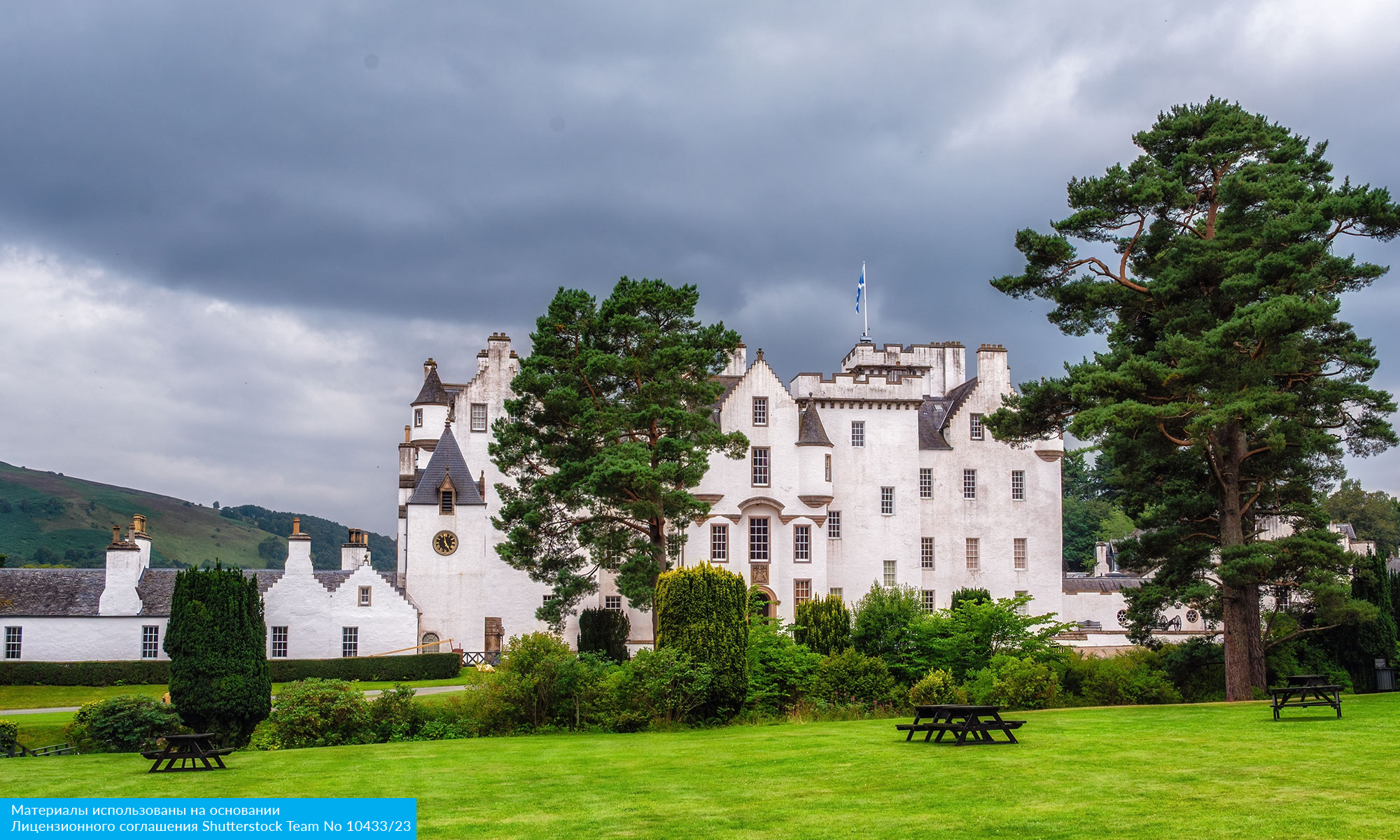 Дорога нас приведет во впечатляющий белоснежный замок Блэр — родовое гнездо герцогов Атолл, вождей клана Мюррей. Здесь вы увидите коллекции оружия и антиквариата, а также узнаете, почему у этого замка есть собственная частная армия.