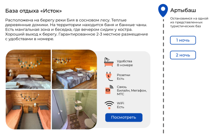 - Проживание на туристических базах