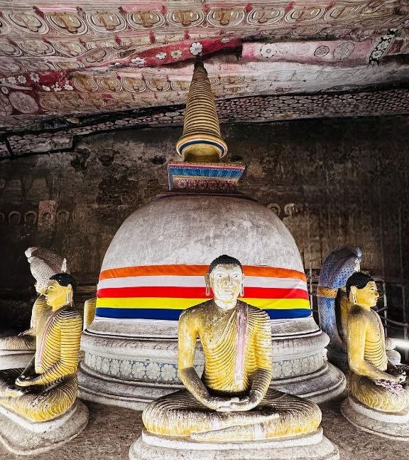 Золотой Будда и пещерный храм Дамбулла. Одно из самых известных и величественных мест на острове. Храм, основан в I веке до нашей эры. Состоит из пяти основных пещер. В храме находится самая большая коллекция статуй Будды, многим из которых более 2000 лет. Храм внесён в список всемирного наследия Юнеско.