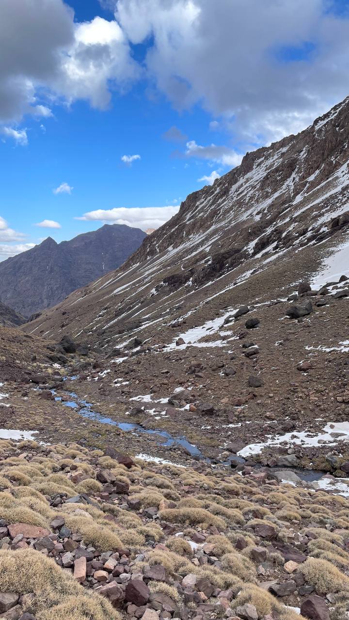После завтрака мы познакомимся с нашими горными гидами и возьмём в прокат необходимое снаряжение. Погрузив на осликов свои вещи, выходим на трек в приют Тубкаль, откуда завтра начнётся наше восхождение. Вверх идем по хорошей широкой тропе, окруженной горами, переход обычно занимает около 5 часов. Обед сделаем в маленьком горном поселении с видом на пройденный путь.Приходим в приют, заселяемся, заранее подгоняем по обуви наши кошки и обсуждаем за ужином детали восхождения. Ночуем в приюте на высоте 3200 метров, условия скромные, но здесь тепло, есть электричество, минимальный интернет, горячая вода в душе, полноценное трёхразовое питание и основные удобства. Прямо с крыльца открывается величественная панорама на ущелье, по которому мы поднялись сюда.