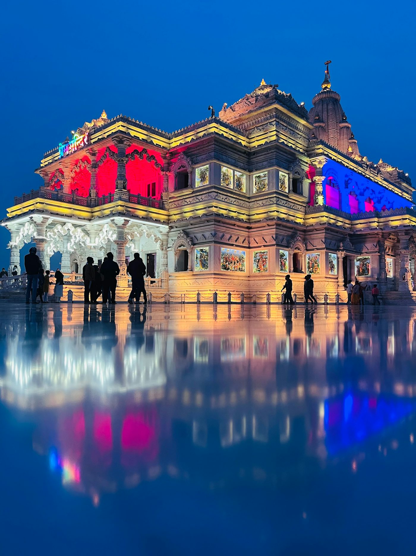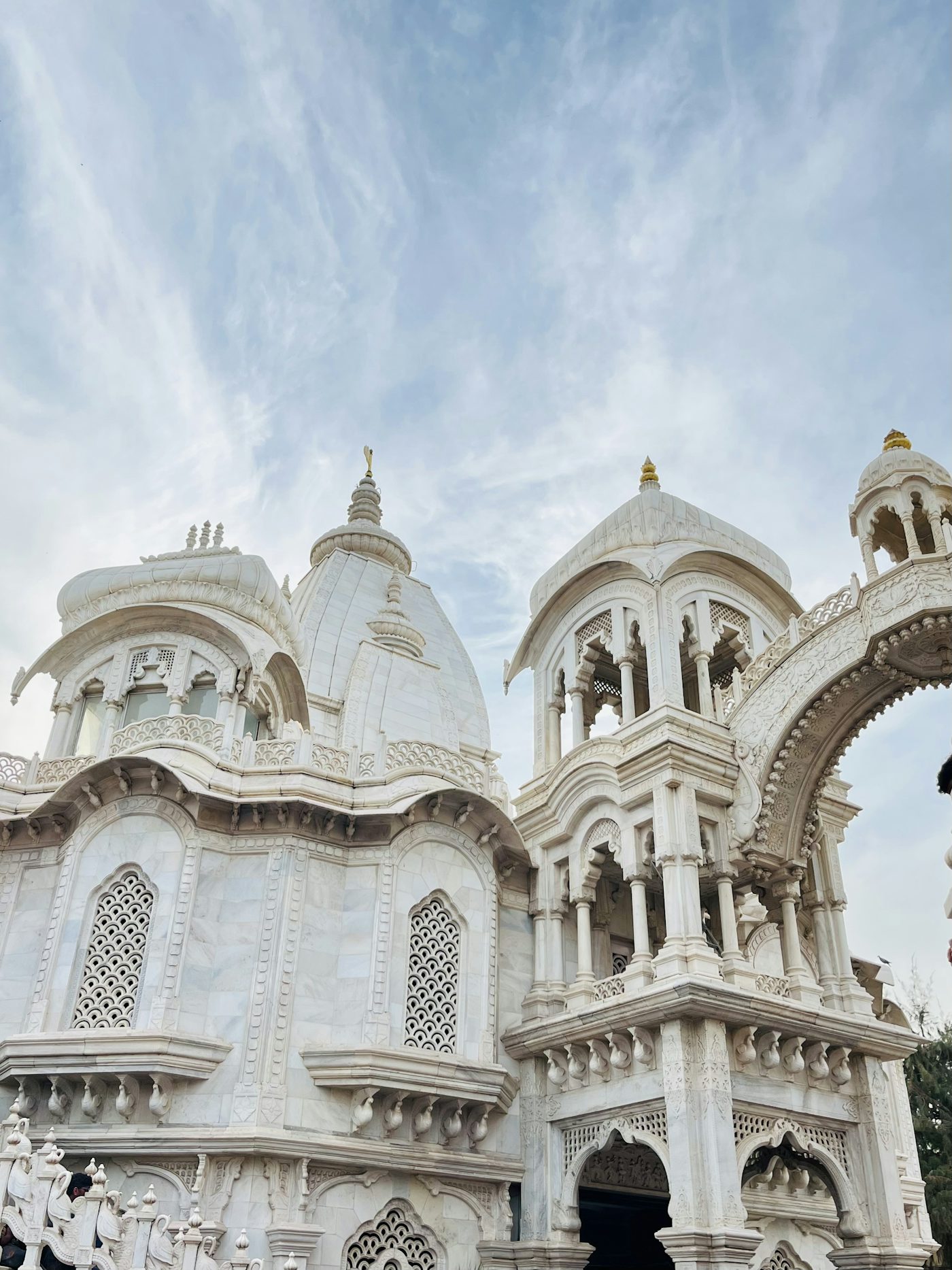 Это современный беломраморный шедевр, который обязателен к посещению. Весь храм покрыт резьбой, изображающей сцены из жизни Кришны и Радхи. К закату здесь включают разноцветную подсветку, и храм начинает светиться изнутри.