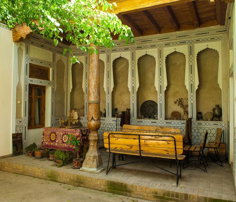 После завтрака собираем чемоданы и быстро на вокзал. там нас ждет очень быстрый и ультра современный поезд ( из самой Испании везли) - за час с копейками приедем в Бухару. О, Бухара, ты мир! Делаем следующую запись в блокноте в графе "А я и не знал" - Историю происхождения современных зданий связанных с царской семьей и княгиней Ольгой. И это только начало. Едем дальше в Бухару ( 8 км). В гостинице на площади Ляби Хауз нас ждут мои друзья, теперь уже и Ваши. Места в частной гостинице мы получим именные ( у каждой комнаты не номер а Имя) . После обеда по бухарски - нас ждут следующие познавательные экскурсии на площади Ляби Хауз.