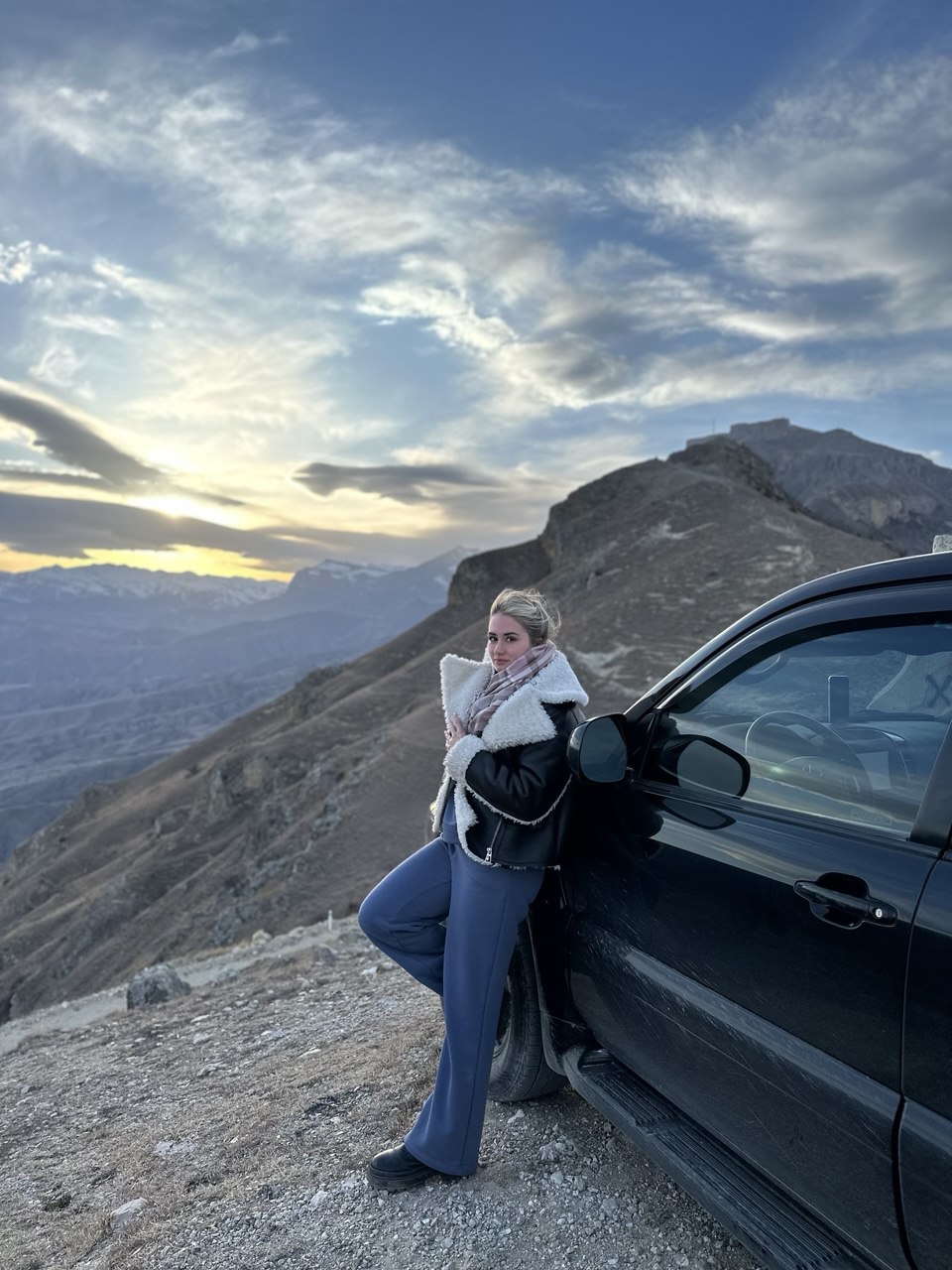 Финальная точка дня — Поляна Айвазовского. Солнце медленно уходит за вершины, окрашивая горы в золото и розовый. Мы отдыхаем, делаем атмосферные фотографии, провожаем закат.
