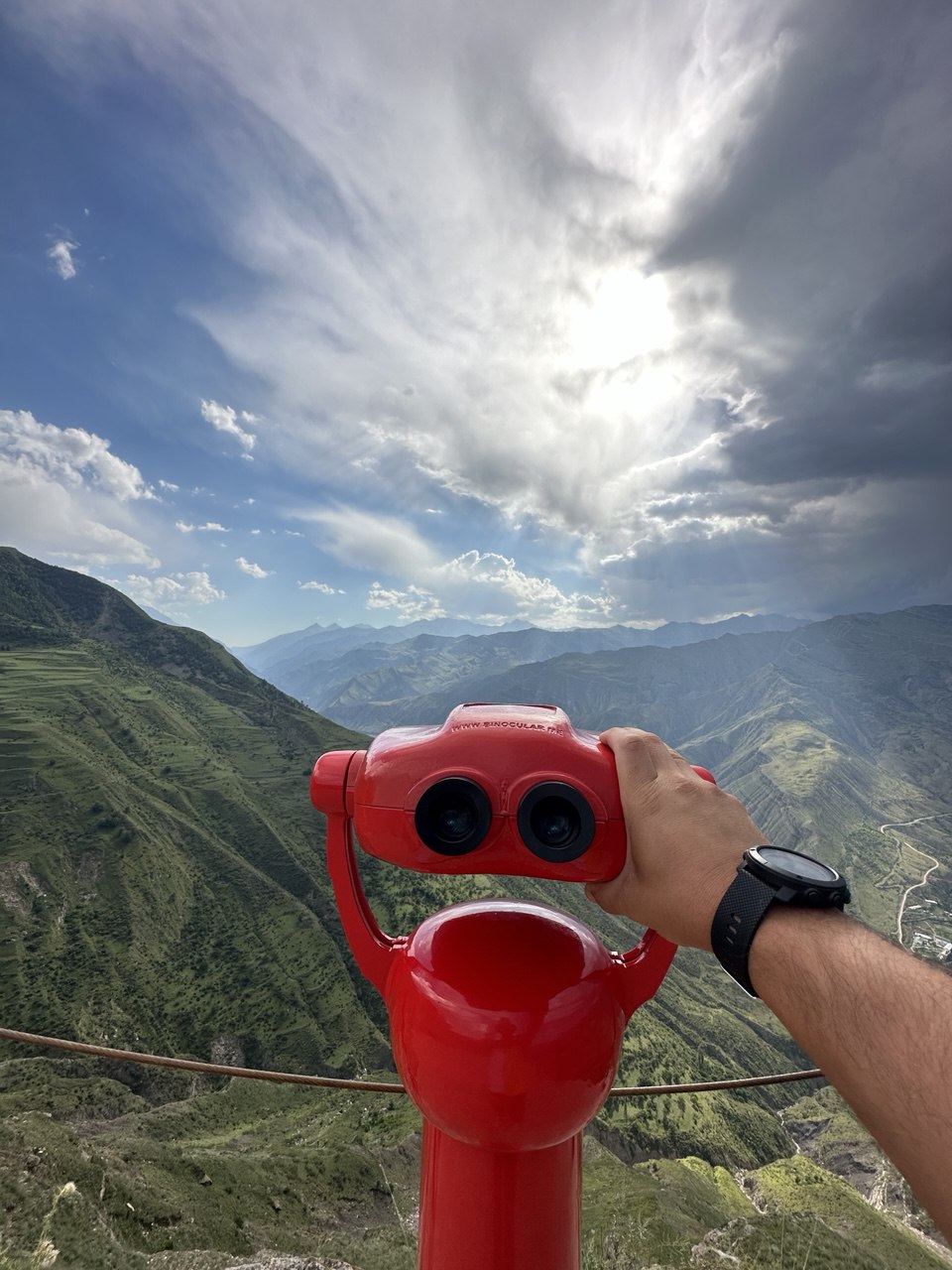Спустившись, мы направляемся к террасам Чоха. Словно огромная зелёная лестница, уходящая в горы. Отсюда открываются потрясающие виды на древний аул Чох — один из самых старых на Кавказе. Каменные дома, сложенные ярусами, и горы, обнимающие долину.