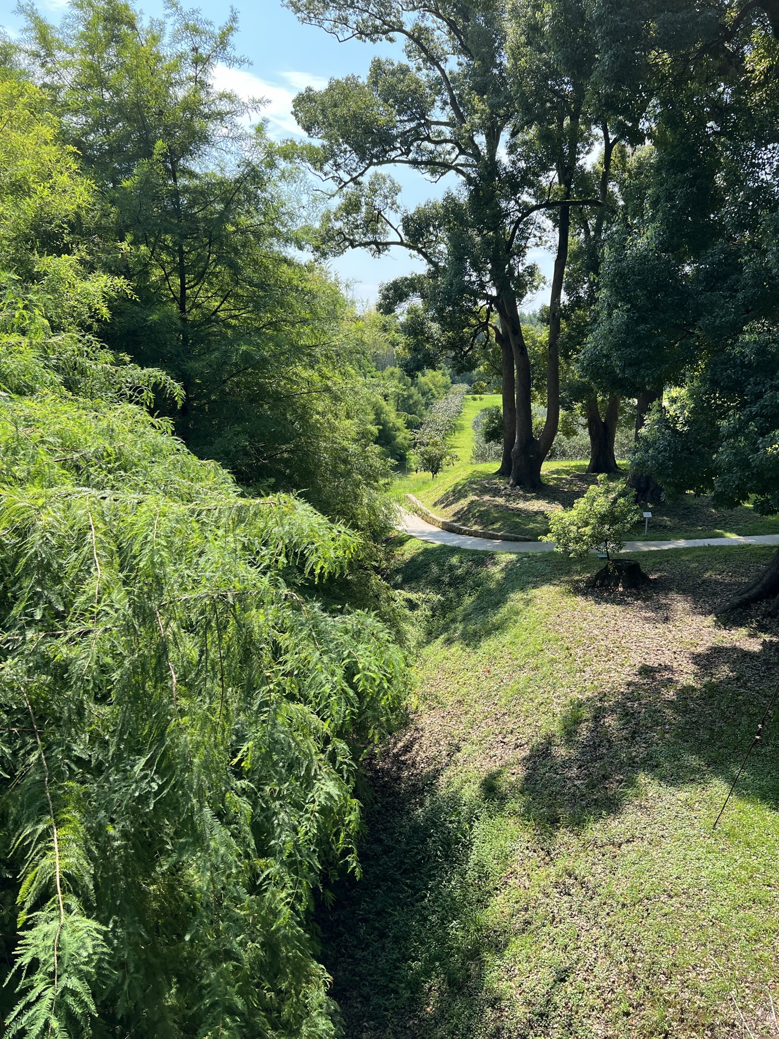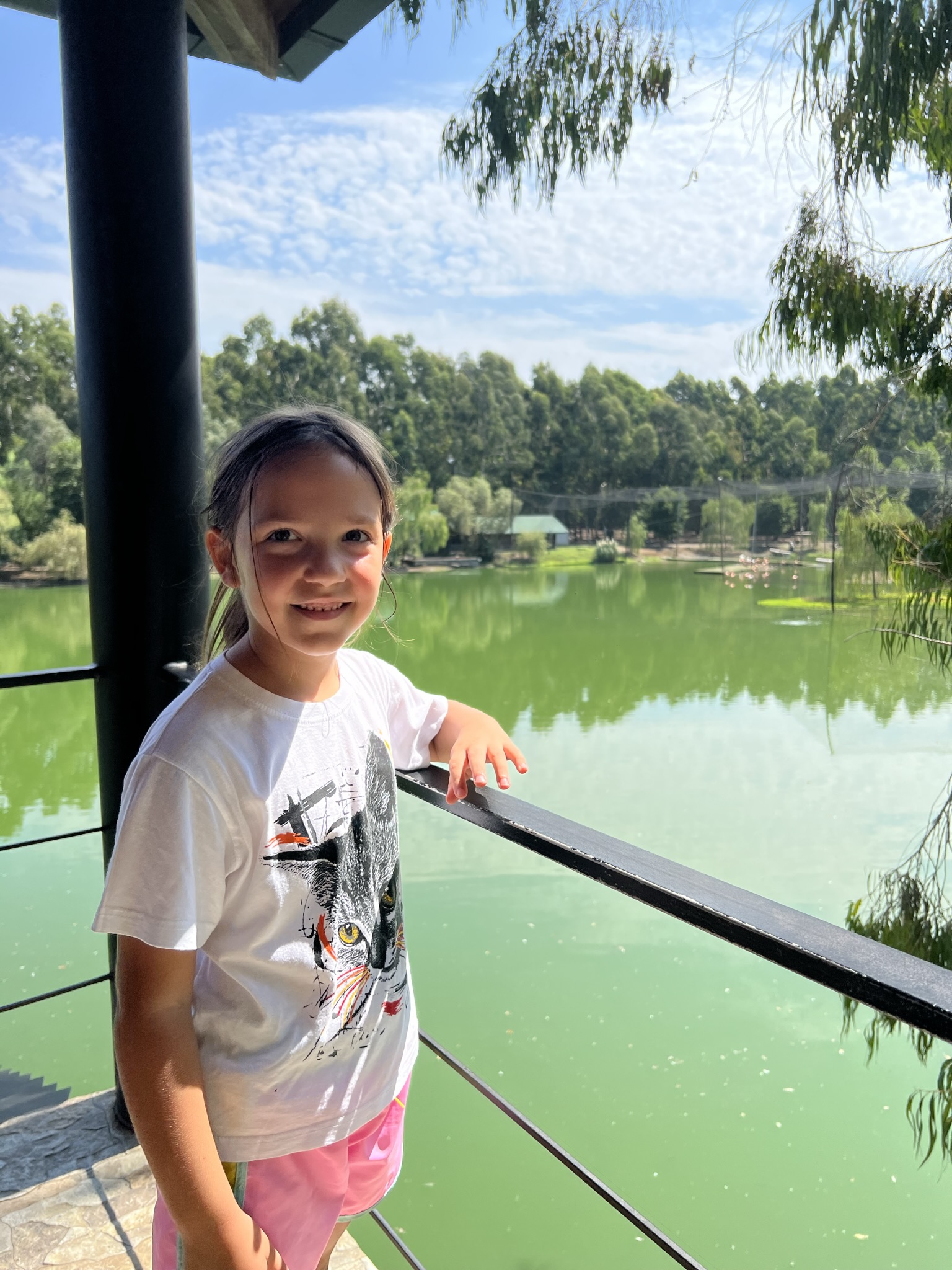 В ближайших к входу вольерах живут павлины, цапли и прочие крупные пернатые с хохолками. В дальних вольерах лемуры и редкие птицы: туканы, гиацинтовые ара. На островке в озере стоят розовые фламинго, черные и белые аисты. Сам остров накрыт огромной высокой сеткой, птицы внутри и довольно далеко. Также в озере живут утята и лебеди. Когда попадаем в гости к гигантским деревьям, тут, словно в сказке — дорожки, большие деревья. Того и гляди мимо пролетит Баба Яга в ступе. О том, что мы в Xxi веке, напоминают громкоговорители и питьевые фонтанчики. Многие деревья сопровождают иллюстрации того, как их сюда перевозили — по суше или по морю. Тут же перекинут мост, а под ним аллея болотных кипарисов. Тут точно живет Кощей Бессмертный J
