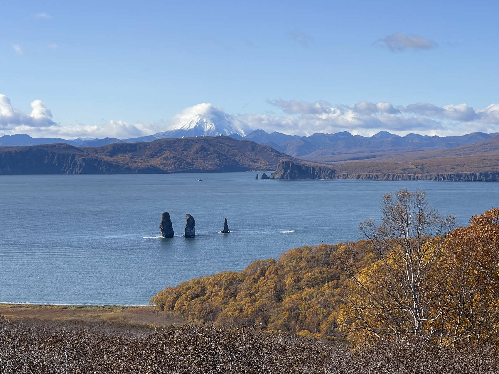 Одна из визитных карточек Камчатки. Три каменных столпа вырастают прямо из воды на входе в Авачинскую бухту — древние стражи океана. Местные легенды рассказывают, что это три брата, которые встали на защиту берегов от стихии и навсегда окаменели.