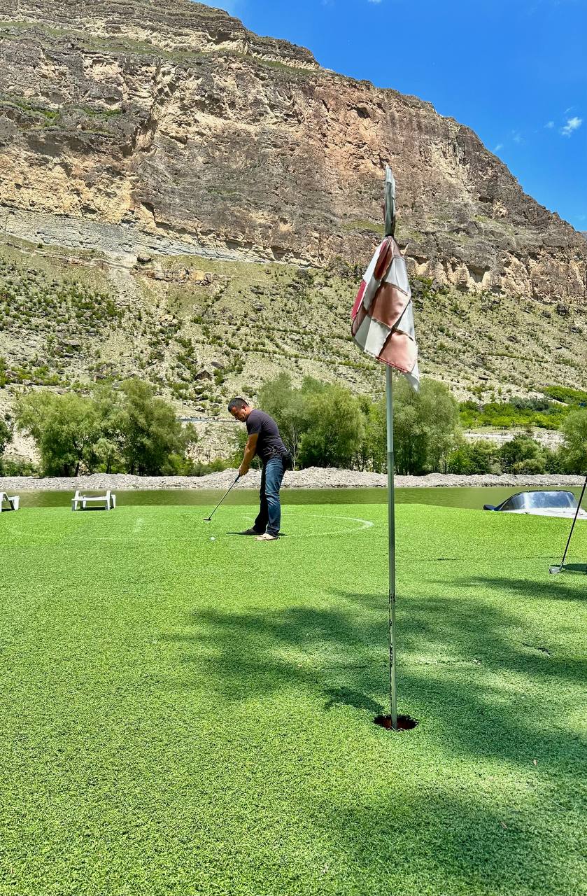 Горная база: Баня с озером и гольф: Заслуженная награда за смелость. Жаркая баня поможет расслабить мышцы, прыжок в прохладное озеро вернет тонус, а партия в гольф на фоне суровых хребтов станет необычным финалом отдыха.