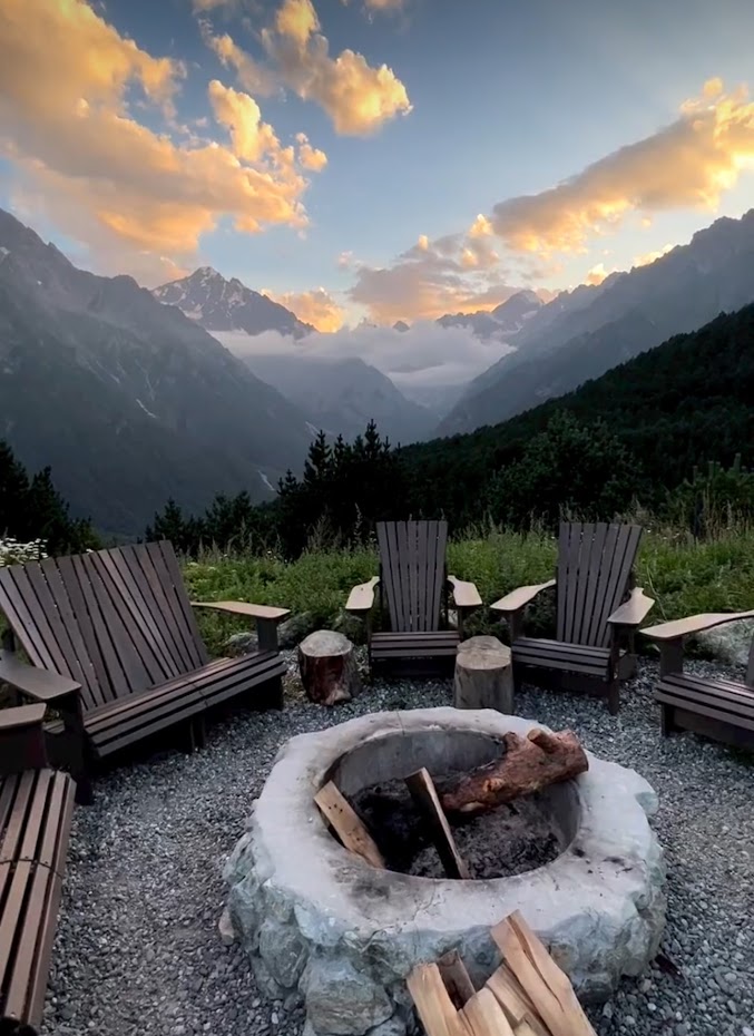 И всё это время вы живёте в горах. Просыпаетесь — за окном вершины. Вечером — костёр, звёзды, шашлык.