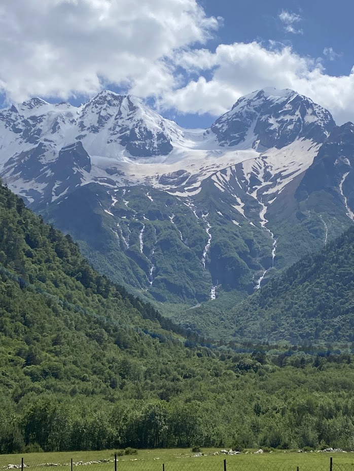 Второй день завтраком в объятиях Кавказского хребта. Свежий горный воздух и виды, от которых захватывает дух — идеальное начало этого долгого путешествия.